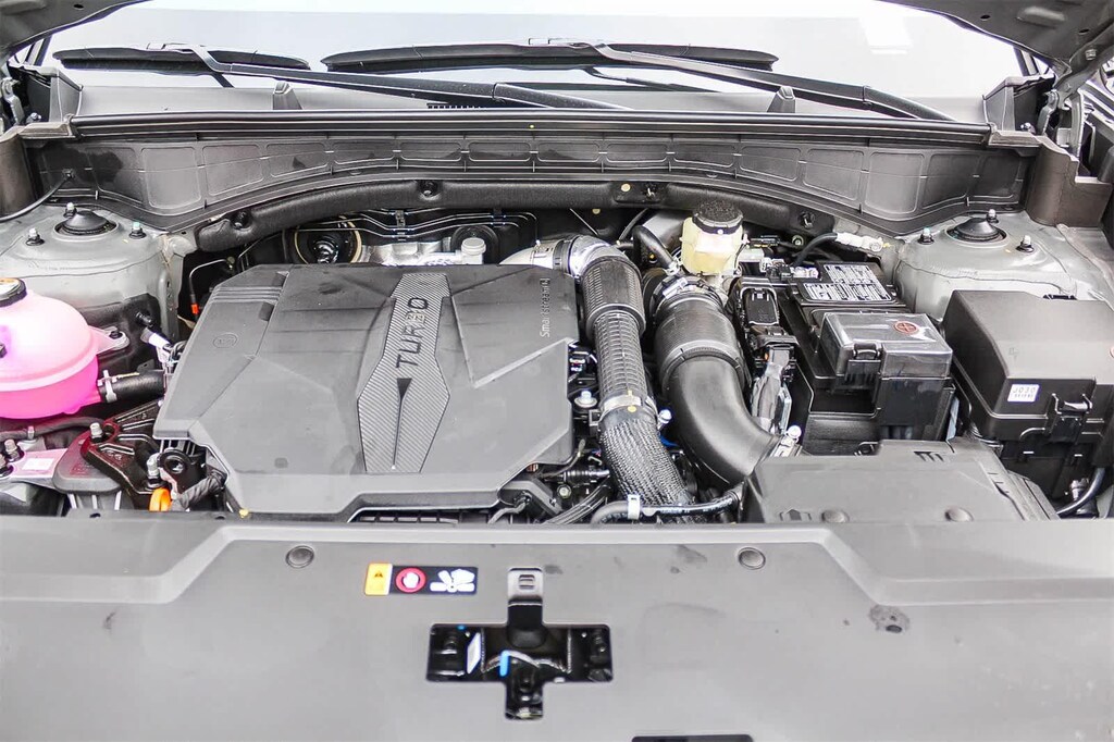 This vehicle has Option Group 01, Gray Cloth, 18 x 7.5J Alloy Wheels, 3rd row seats: bench, 4-Wheel Disc Brakes, 6 Speakers, ABS brakes, Air Conditioning, All Season Fitted Liners, Alloy wheels, AM/FM radio: SiriusXM, Apple CarPlay & Android Auto, Auto High-beam Headlights, Brake assist, Bumpers: body-color, Cargo Cover/Screen, Cargo Net, Carpeted Floor Mats, Delay-off headlights, Driver door bin, Driver vanity mirror, Dual front impact airbags, Dual front side impact airbags, Electronic Stability Control, Emergency communication system, Exterior Parking Camera Rear, First Aid Kit, Four wheel independent suspension, Front anti-roll bar, Front Bucket Seats, Front Center Armrest, Front reading lights, Fully automatic headlights, Heated door mirrors, Illuminated entry, Knee airbag, Leather steering wheel, Low tire pressure warning, Occupant sensing airbag, Outside temperature display, Overhead airbag, Overhead console, Panic alarm, Passenger door bin, Passenger vanity mirror, Power door mirrors, Power Liftgate, Power steering, Power windows, Radio: AM/FM/HD Display Audio, Rear anti-roll bar, Rear seat center armrest, Rear side impact airbag, Rear window defroster, Rear window wiper, Remote keyless entry, Security system, Speed control, Speed-sensing steering, Split folding rear seat, Spoiler, Steering wheel mounted audio controls, Tachometer, Telescoping steering wheel, Tilt steering wheel, Traction control, Trip computer, Variably intermittent wipers, and YES Essentials Stain-Resistant Cloth Seat Trim.