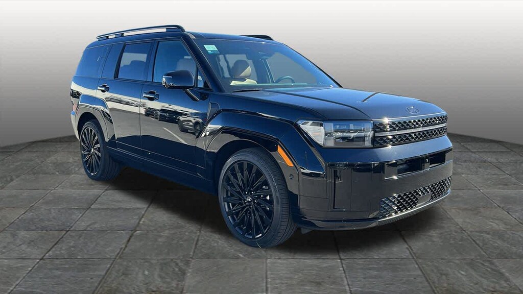 Phantom Black 2026 Hyundai Santa Fe Calligraphy AWD 8-Speed Automatic with SHIFTRONIC 2.5L I4 AWD, Pecan Brown Leather.