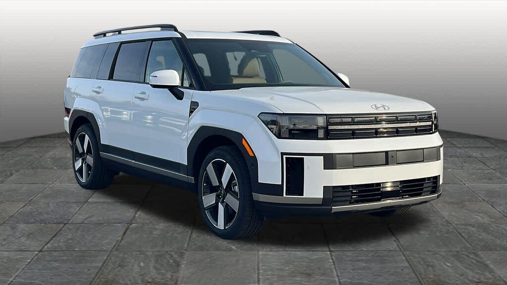 Serenity White 2026 Hyundai Santa Fe Limited AWD 8-Speed Automatic with SHIFTRONIC 2.5L I4 AWD, Pecan Brown Leather.