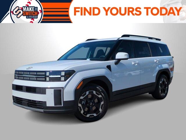 Serenity White 2026 Hyundai Santa Fe SEL AWD 8-Speed Automatic with SHIFTRONIC 2.5L I4 AWD, Black Premium Synthetic, 18 x 7.5J Alloy Wheels, 3rd row seats: bench, 4-Wheel Disc Brakes, 6 Speakers, ABS brakes, Air Conditioning, Alloy wheels, AM/FM radio: SiriusXM, Apple CarPlay & Android Auto, Auto High-beam Headlights, Automatic temperature control, Brake assist, Bumpers: body-color, Cargo Net, Cargo Tray, Carpeted Floor Mats, Delay-off headlights, Driver door bin, Driver vanity mirror, Dual front impact airbags, Dual front side impact airbags, Electronic Stability Control, Emergency communication system, Exterior Parking Camera Rear, First Aid Kit, Four wheel independent suspension, Front anti-roll bar, Front Bucket Seats, Front Center Armrest, Front dual zone A/C, Front reading lights, Fully automatic headlights, H-Tex Leatherette Seat Trim, Heated door mirrors, Heated Front Bucket Seats, Heated front seats, Illuminated entry, Knee airbag, Leather steering wheel, Low tire pressure warning, Occupant sensing airbag, Option Group 01, Outside temperature display, Overhead airbag, Overhead console, Panic alarm, Passenger door bin, Passenger vanity mirror, Power door mirrors, Power driver seat, Power Liftgate, Power steering, Power windows, Radio: AM/FM/HD Display Audio, Rear anti-roll bar, Rear seat center armrest, Rear side impact airbag, Rear window defroster, Rear window wiper, Remote keyless entry, Roof Rack Crossbars, Security system, Speed control, Speed-sensing steering, Split folding rear seat, Spoiler, Steering wheel mounted audio controls, Tachometer, Telescoping steering wheel, Tilt steering wheel, Traction control, Trip computer, Turn signal indicator mirrors, Variably intermittent wipers, AWD, Black Premium Synthetic.