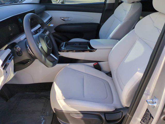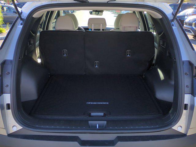 You will love our amazing 2026 Hyundai Tucson Hybrid Blue AWD in Shimmering Silver. Motivated by a TurboCharged 1.6 Liter 4 Cylinder and an Electric Motor providing a combined 231hp to a paddle-shifted 6 Speed Automatic transmission for energetic acceleration. This All Wheel Drive SUV also sips fuel, seeing nearly 38mpg on the highway and in the city, and it shows off a sophisticated design. A bold grille and dramatic lines enhance our Tucson Hybrids good looks with a hands-free liftgate, LED lighting, roof rails, rear spoiler, and alloy wheels.