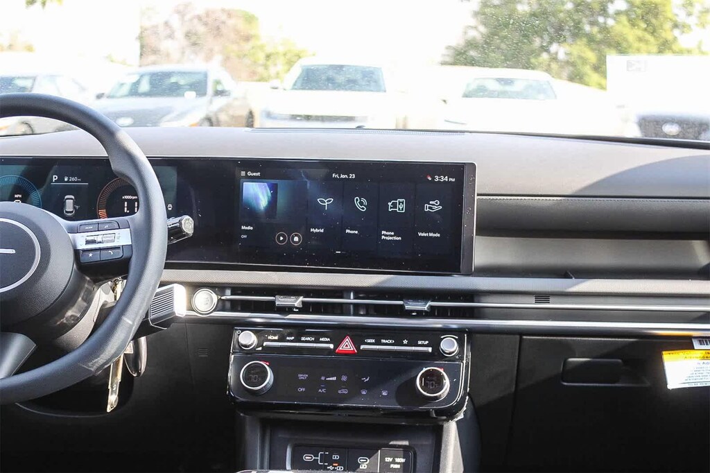 This vehicle has Option Group 01, 1.6L I4 DGI Hybrid Turbocharged DOHC 16V LEV3-SULEV30, 17 x 7.0J Alloy Wheels, 4-Wheel Disc Brakes, 6 Speakers, ABS brakes, Air Conditioning, All Season Fitted Liners, Alloy wheels, AM/FM radio: SiriusXM, Apple CarPlay & Android Auto, Auto High-beam Headlights, Automatic temperature control, Brake assist, Bumpers: body-color, Cargo Net, Cargo Tray, Carpeted Floor Mats, Delay-off headlights, Driver door bin, Driver vanity mirror, Dual front impact airbags, Dual front side impact airbags, Electronic Stability Control, Emergency communication system: None, First Aid Kit, Four wheel independent suspension, Front anti-roll bar, Front Bucket Seats, Front Center Armrest, Front dual zone A/C, Front reading lights, Fully automatic headlights, Illuminated entry, Low tire pressure warning, Occupant sensing airbag, Outside temperature display, Overhead airbag, Overhead console, Panic alarm, Passenger door bin, Passenger vanity mirror, Power door mirrors, Power steering, Power windows, Radio data system, Radio: AM/FM/HD Audio System, Rear anti-roll bar, Rear reading lights, Rear seat center armrest, Rear side impact airbag, Rear window defroster, Rear window wiper, Remote keyless entry, Roadside Assistance Kit, Security system, Speed control, Split folding rear seat, Spoiler, Stain and Odor Resistant Cloth Seat Trim, Steering wheel mounted audio controls, Tachometer, Telescoping steering wheel, Tilt steering wheel, Traction control, Trip computer, and Variably intermittent wipers.
