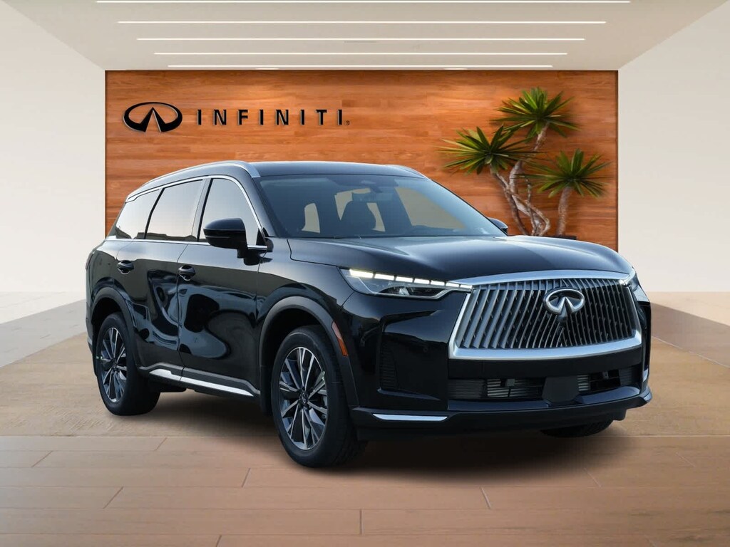 Mineral Black 2026 INFINITI QX60 LUXE AWD 9-Speed Automatic 2.0L I4 MPI Turbocharged DOHC 16V 268hp 17 Speakers, 3rd row seats: bench, 4-Wheel Disc Brakes, ABS brakes, Air Conditioning, Alloy wheels, AM/FM radio: SiriusXM with 360L, Anti-whiplash front head restraints, Apple CarPlay/Android Auto, Auto High-beam Headlights, Auto tilt-away steering wheel, Auto-dimming door mirrors, Auto-dimming Rear-View mirror, Automatic temperature control, Bose Performance Series 17-Speaker Sound System, Brake assist, Bumpers: body-color, Climate Controlled Front Bucket Seats, Delay-off headlights, Driver door bin, Driver vanity mirror, Dual front impact airbags, Dual front side impact airbags, Electronic Stability Control, Emergency communication system: INFINITI InTouch, Four wheel independent suspension, Front anti-roll bar, Front Bucket Seats, Front Center Armrest, Front dual zone A/C, Front reading lights, Fully automatic headlights, Garage door transmitter: HomeLink, Heated door mirrors, Heated front seats, Heated rear seats, Heated steering wheel, Illuminated entry, Knee airbag, Leather Shift Knob, Leather steering wheel, Low tire pressure warning, Memory seat, Navigation system: Google Built-in, Occupant sensing airbag, Outside temperature display, Overhead airbag, Overhead console, Panic alarm, Passenger door bin, Passenger vanity mirror, Power door mirrors, Power driver seat, Power Liftgate, Power moonroof: Panoramic, Power passenger seat, Power steering, Power windows, Radio data system, Radio: Klipsch Premium Audio System, Rain sensing wipers, Rear air conditioning, Rear anti-roll bar, Rear reading lights, Rear seat center armrest, Rear side impact airbag, Rear window defroster, Rear window wiper, Reclining 3rd row seat, Remote keyless entry, Security system, Speed control, Speed-sensing steering, Speed-Sensitive Wipers, Split folding rear seat, Spoiler, Steering wheel memory, Steering wheel mounted audio controls, Tachometer, TailorFit-Appointed Seating Surfaces, Telescoping steering wheel, Tilt steering wheel, Traction control, Trip computer, Turn signal indicator mirrors, Variably intermittent wipers, Ventilated front seats, Wheels: 20 x 8J Machined Aluminum Alloy.