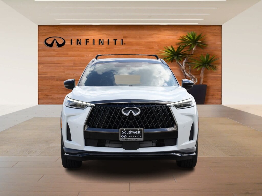 Radiant White/Black Obsidian 2026 INFINITI QX60 SPORT AWD 9-Speed Automatic 2.0L I4 PDI Turbocharged DOHC 16V 268hp 17 Speakers, 3rd row seats: bench, 4-Wheel Disc Brakes, ABS brakes, Air Conditioning, Alloy wheels, AM/FM radio: SiriusXM with 360L, Anti-whiplash front head restraints, Apple CarPlay/Android Auto, Auto High-beam Headlights, Auto tilt-away steering wheel, Auto-dimming door mirrors, Auto-dimming Rear-View mirror, Automatic temperature control, Bose Performance Series 17-Speaker Sound System, Brake assist, Bumpers: body-color, Climate Controlled Front Bucket Seats, Delay-off headlights, Driver door bin, Driver vanity mirror, Dual front impact airbags, Dual front side impact airbags, Electronic Stability Control, Emergency communication system: INFINITI InTouch, Four wheel independent suspension, Front anti-roll bar, Front Bucket Seats, Front Center Armrest, Front dual zone A/C, Front reading lights, Fully automatic headlights, Garage door transmitter: HomeLink, Genuine wood door panel insert, Heated door mirrors, Heated front seats, Heated rear seats, Heated steering wheel, Illuminated entry, Knee airbag, Leather Shift Knob, Leather steering wheel, Low tire pressure warning, Memory seat, Navigation system: Google Built-in, Occupant sensing airbag, Outside temperature display, Overhead airbag, Overhead console, Panic alarm, Passenger door bin, Passenger vanity mirror, Power door mirrors, Power driver seat, Power Liftgate, Power moonroof: Panoramic, Power passenger seat, Power steering, Power windows, Radio data system, Radio: Klipsch Premium Audio System, Rain sensing wipers, Rear air conditioning, Rear anti-roll bar, Rear reading lights, Rear side impact airbag, Rear window defroster, Rear window wiper, Reclining 3rd row seat, Remote keyless entry, Security system, Speed control, Speed-sensing steering, Speed-Sensitive Wipers, Split folding rear seat, Spoiler, Steering wheel memory, Steering wheel mounted audio controls, Tachometer, Tailorfit-Appointed Seating Surfaces, Telescoping steering wheel, Tilt steering wheel, Traction control, Trip computer, Turn signal indicator mirrors, Variably intermittent wipers, Ventilated front seats, Wheels: 20 x 8J Unique Sporty Machined Aluminum Alloy.