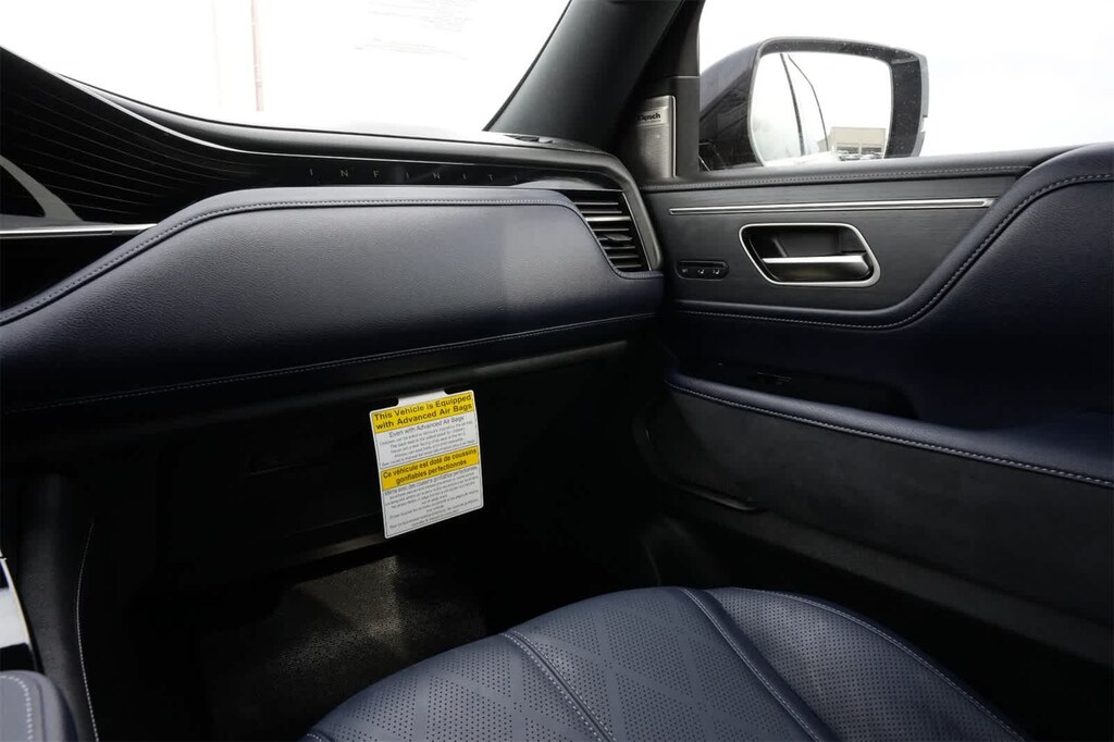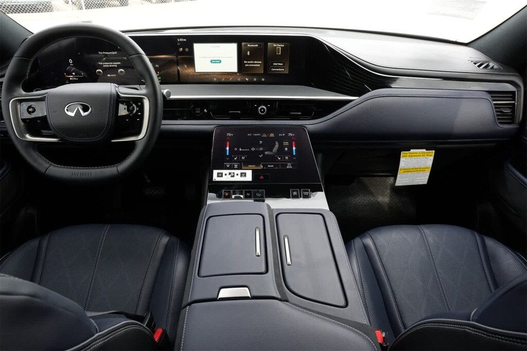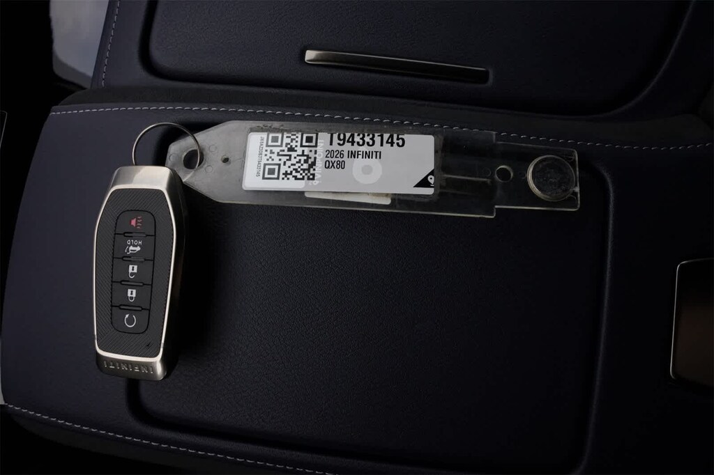 Radiant White/Black Obsidian 2026 INFINITI QX80 SPORT 4WD 9-Speed Automatic 3.5L V6 DOHC 24V 3rd row seats: bench, 4-Wheel Disc Brakes, ABS brakes, Adaptive suspension, Air Conditioning, Alloy wheels, AM/FM radio: SiriusXM with 360L, Anti-whiplash front head restraints, Apple CarPlay/Android Auto, Audio memory, Auto High-beam Headlights, Auto tilt-away steering wheel, Auto-dimming door mirrors, Auto-dimming Rear-View mirror, Auto-leveling suspension, Automatic temperature control, Brake assist, Compass, Delay-off headlights, Driver door bin, Driver vanity mirror, Dual front impact airbags, Dual front side impact airbags, Electronic Stability Control, Emergency communication system: INFINITI InTouch, Four wheel independent suspension, Front anti-roll bar, Front Bucket Seats, Front Center Armrest, Front dual zone A/C, Front reading lights, Fully automatic headlights, Garage door transmitter: HomeLink, Genuine wood dashboard insert, Genuine wood door panel insert, Heads-Up Display, Heated and Climate Controlled Front Bucket Seats with Massage, Heated door mirrors, Heated front seats, Heated rear seats, Heated steering wheel, HVAC memory, Illuminated entry, Knee airbag, Leather steering wheel, Low tire pressure warning, Memory seat, Navigation system: Google Built-in, Occupant sensing airbag, Outside temperature display, Overhead airbag, Overhead console, Panic alarm, Passenger door bin, Passenger vanity mirror, Power door mirrors, Power driver seat, Power Liftgate, Power moonroof, Power passenger seat, Power steering, Power windows, Radio data system, Radio: Klipsch Premiere Audio System, Rain sensing wipers, Rear air conditioning, Rear anti-roll bar, Rear reading lights, Rear seat center armrest, Rear window defroster, Rear window wiper, Reclining 3rd row seat, Remote keyless entry, Security system, Speed control, Speed-sensing steering, Split folding rear seat, Spoiler, Steering wheel memory, Steering wheel mounted audio controls, Tachometer, Telescoping steering wheel, Tilt steering wheel, Traction control, Trip computer, Turn signal indicator mirrors, Unique SPORT Semi-Aniline Leather Seating Surfaces, Variably intermittent wipers, Ventilated front seats, Ventilated rear seats, Wheels: 22 x 8.5J Unique SPORT Alloy.