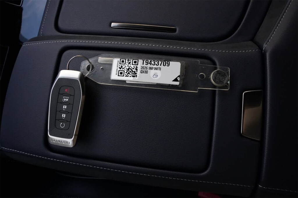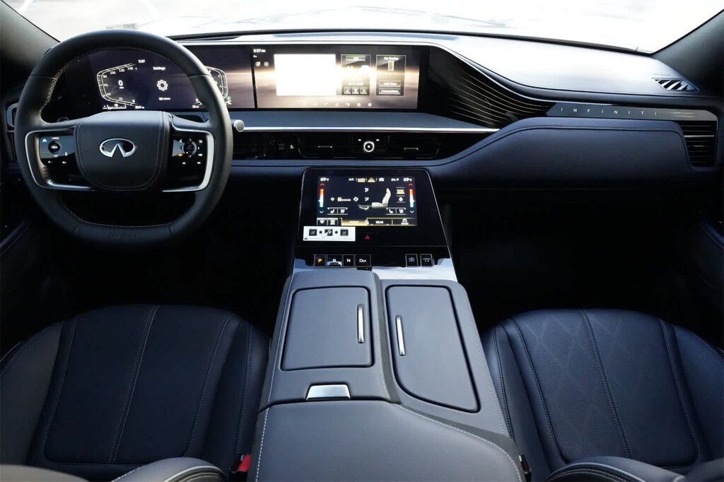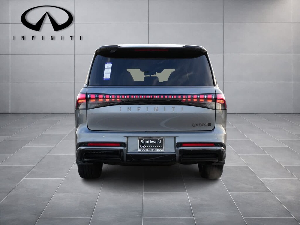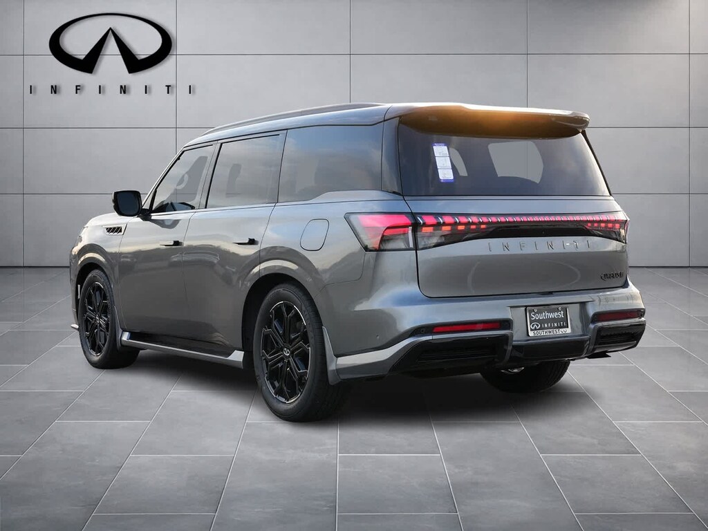 Dynamic Metal/Black Obsidian 2026 INFINITI QX80 SPORT 4WD 9-Speed Automatic 3.5L V6 DOHC 24V 3rd row seats: bench, 4-Wheel Disc Brakes, ABS brakes, Adaptive suspension, Air Conditioning, Alloy wheels, AM/FM radio: SiriusXM with 360L, Anti-whiplash front head restraints, Apple CarPlay/Android Auto, Audio memory, Auto High-beam Headlights, Auto tilt-away steering wheel, Auto-dimming door mirrors, Auto-dimming Rear-View mirror, Auto-leveling suspension, Automatic temperature control, Brake assist, Compass, Delay-off headlights, Driver door bin, Driver vanity mirror, Dual front impact airbags, Dual front side impact airbags, Electronic Stability Control, Emergency communication system: INFINITI InTouch, Four wheel independent suspension, Front anti-roll bar, Front Bucket Seats, Front Center Armrest, Front dual zone A/C, Front reading lights, Fully automatic headlights, Garage door transmitter: HomeLink, Genuine wood dashboard insert, Genuine wood door panel insert, Heads-Up Display, Heated and Climate Controlled Front Bucket Seats with Massage, Heated door mirrors, Heated front seats, Heated rear seats, Heated steering wheel, HVAC memory, Illuminated entry, Knee airbag, Leather steering wheel, Low tire pressure warning, Memory seat, Navigation system: Google Built-in, Occupant sensing airbag, Outside temperature display, Overhead airbag, Overhead console, Panic alarm, Passenger door bin, Passenger vanity mirror, Power door mirrors, Power driver seat, Power Liftgate, Power moonroof, Power passenger seat, Power steering, Power windows, Radio data system, Radio: Klipsch Premiere Audio System, Rain sensing wipers, Rear air conditioning, Rear anti-roll bar, Rear reading lights, Rear seat center armrest, Rear window defroster, Rear window wiper, Reclining 3rd row seat, Remote keyless entry, Security system, Speed control, Speed-sensing steering, Split folding rear seat, Spoiler, Steering wheel memory, Steering wheel mounted audio controls, Tachometer, Telescoping steering wheel, Tilt steering wheel, Traction control, Trip computer, Turn signal indicator mirrors, Unique SPORT Semi-Aniline Leather Seating Surfaces, Variably intermittent wipers, Ventilated front seats, Ventilated rear seats, Wheels: 22 x 8.5J Unique SPORT Alloy.