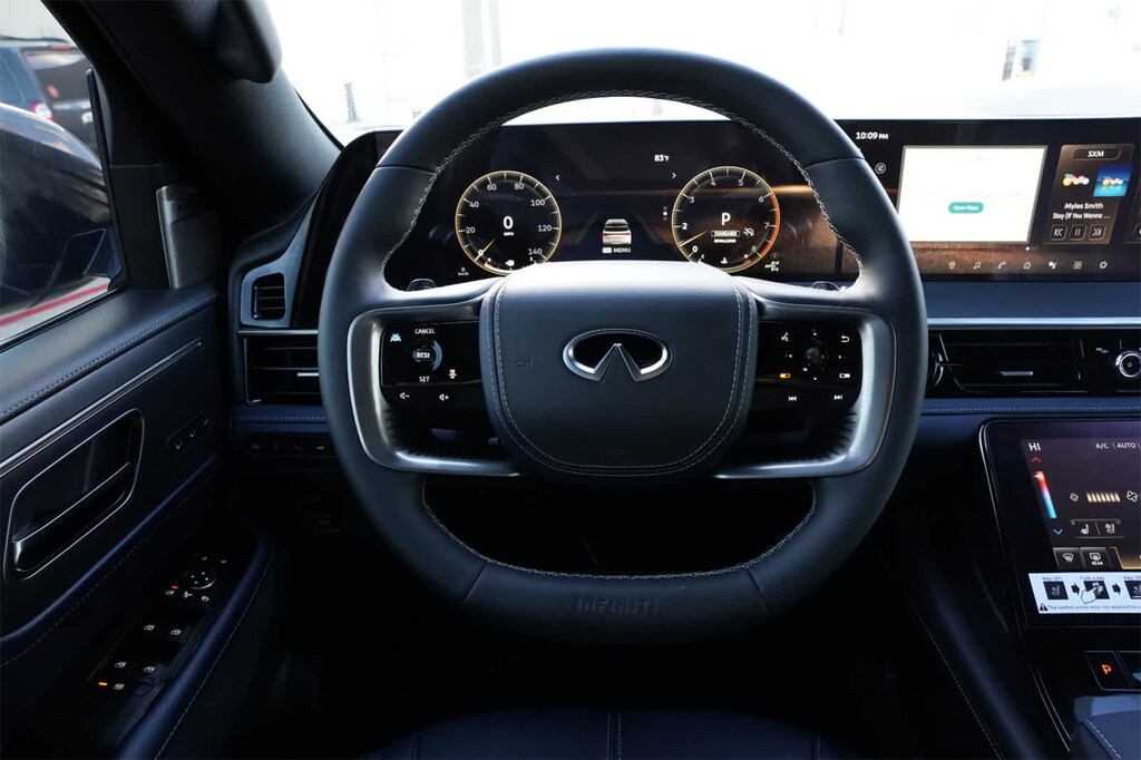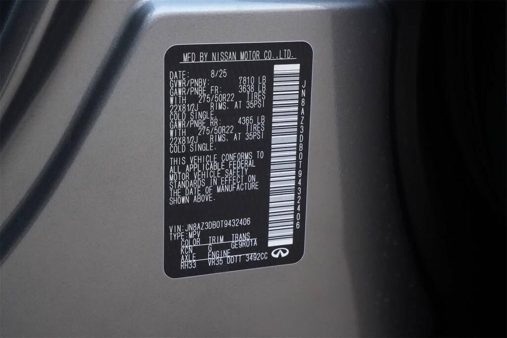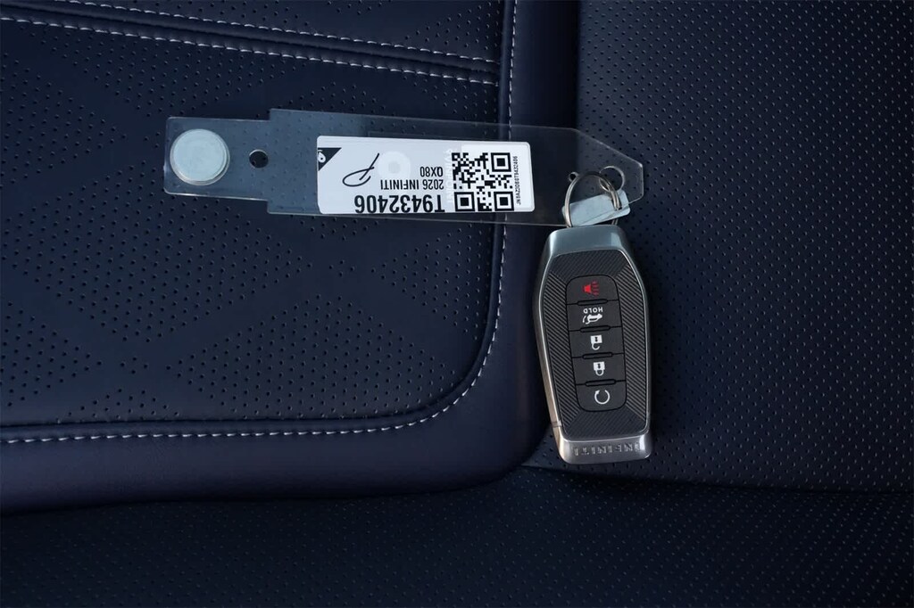 Dynamic Metal 2026 INFINITI QX80 SPORT 4WD 9-Speed Automatic 3.5L V6 DOHC 24V 3rd row seats: bench, 4-Wheel Disc Brakes, ABS brakes, Adaptive suspension, Air Conditioning, Alloy wheels, AM/FM radio: SiriusXM with 360L, Anti-whiplash front head restraints, Apple CarPlay/Android Auto, Audio memory, Auto High-beam Headlights, Auto tilt-away steering wheel, Auto-dimming door mirrors, Auto-dimming Rear-View mirror, Auto-leveling suspension, Automatic temperature control, Black Roof Rail Crossbars, Brake assist, Compass, Dark Chrome Rear Bumper Protector, Delay-off headlights, Driver door bin, Driver vanity mirror, Dual front impact airbags, Dual front side impact airbags, Electronic Stability Control, Emergency communication system: INFINITI InTouch, Four wheel independent suspension, Front anti-roll bar, Front Bucket Seats, Front Center Armrest, Front dual zone A/C, Front reading lights, Fully automatic headlights, Garage door transmitter: HomeLink, Genuine wood dashboard insert, Genuine wood door panel insert, Heads-Up Display, Heated and Climate Controlled Front Bucket Seats with Massage, Heated door mirrors, Heated front seats, Heated rear seats, Heated steering wheel, HVAC memory, Illuminated entry, Knee airbag, Leather steering wheel, Low tire pressure warning, Memory seat, Navigation system: Google Built-in, Occupant sensing airbag, Outside temperature display, Overhead airbag, Overhead console, Panic alarm, Passenger door bin, Passenger vanity mirror, Power door mirrors, Power driver seat, Power Liftgate, Power moonroof, Power passenger seat, Power steering, Power windows, Radio data system, Radio: Klipsch Premiere Audio System, Rain sensing wipers, Rear air conditioning, Rear anti-roll bar, Rear reading lights, Rear seat center armrest, Rear window defroster, Rear window wiper, Reclining 3rd row seat, Remote keyless entry, Security system, Speed control, Speed-sensing steering, Splash Guards, Split folding rear seat, Spoiler, Sport Exterior Package, Steering wheel memory, Steering wheel mounted audio controls, Tachometer, Telescoping steering wheel, Tilt steering wheel, Traction control, Trip computer, Turn signal indicator mirrors, Unique SPORT Semi-Aniline Leather Seating Surfaces, Variably intermittent wipers, Ventilated front seats, Ventilated rear seats, Wheels: 22 x 8.5J Unique SPORT Alloy.