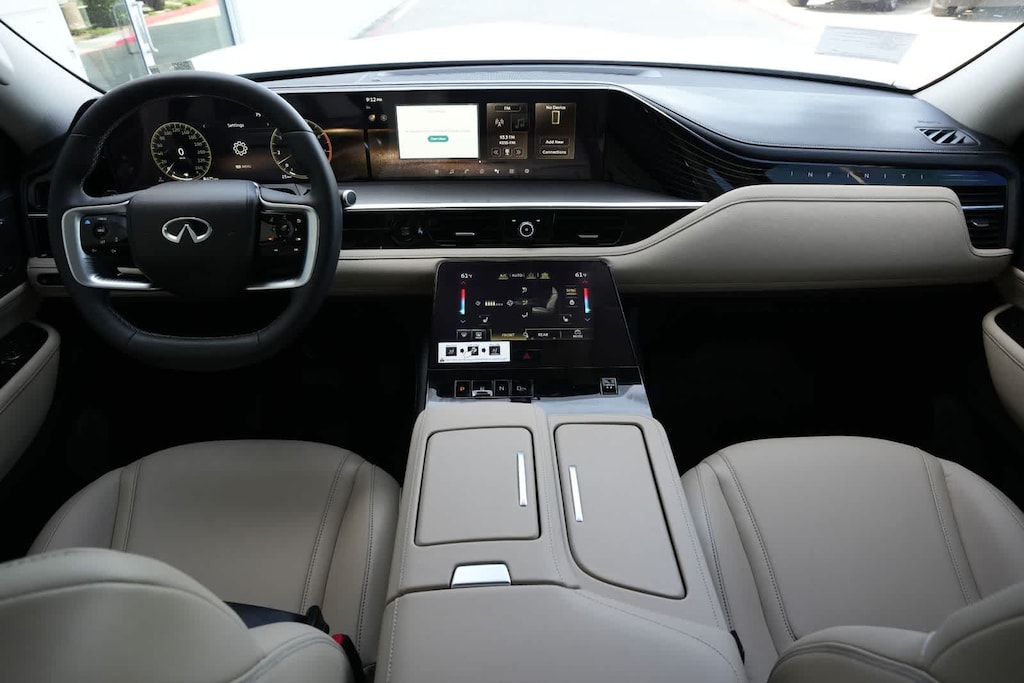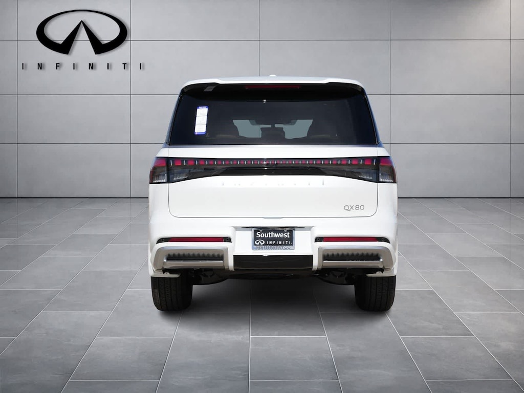 Radiant White 2026 INFINITI QX80 PURE RWD 9-Speed Automatic 3.5L V6 DOHC 24V 14 Speakers, 3rd row seats: bench, 4-Wheel Disc Brakes, ABS brakes, Air Conditioning, Alloy wheels, AM/FM radio: SiriusXM with 360L, Anti-whiplash front head restraints, Apple CarPlay/Android Auto, Audio memory, Auto High-beam Headlights, Auto tilt-away steering wheel, Auto-dimming door mirrors, Auto-dimming Rear-View mirror, Automatic temperature control, Brake assist, Bumpers: body-color, Compass, Delay-off headlights, Driver door bin, Driver vanity mirror, Dual front impact airbags, Dual front side impact airbags, Electronic Stability Control, Emergency communication system: INFINITI InTouch, Four wheel independent suspension, Front anti-roll bar, Front Bucket Seats, Front Center Armrest, Front dual zone A/C, Front reading lights, Fully automatic headlights, Garage door transmitter: myQ Connected Garage, Heated door mirrors, Heated Front Bucket Seats, Heated front seats, Heated rear seats, Heated steering wheel, HVAC memory, Illuminated entry, Knee airbag, Leather steering wheel, Low tire pressure warning, Memory seat, Navigation system: Google Built-in, Occupant sensing airbag, Outside temperature display, Overhead airbag, Overhead console, Panic alarm, Passenger door bin, Passenger vanity mirror, Power door mirrors, Power driver seat, Power Liftgate, Power moonroof, Power passenger seat, Power steering, Power windows, Radio data system, Radio: Klipsch Premium Audio System, Rain sensing wipers, Rear air conditioning, Rear anti-roll bar, Rear reading lights, Rear seat center armrest, Rear window defroster, Rear window wiper, Reclining 3rd row seat, Remote keyless entry, Security system, Speed control, Speed-sensing steering, Split folding rear seat, Spoiler, Steering wheel memory, Steering wheel mounted audio controls, Tachometer, Tailorfit-Appointed Seating Surfaces, Telescoping steering wheel, Tilt steering wheel, Traction control, Trip computer, Turn signal indicator mirrors, Variably intermittent wipers, Wheels: 20 x 8.5J Aluminum Alloy.