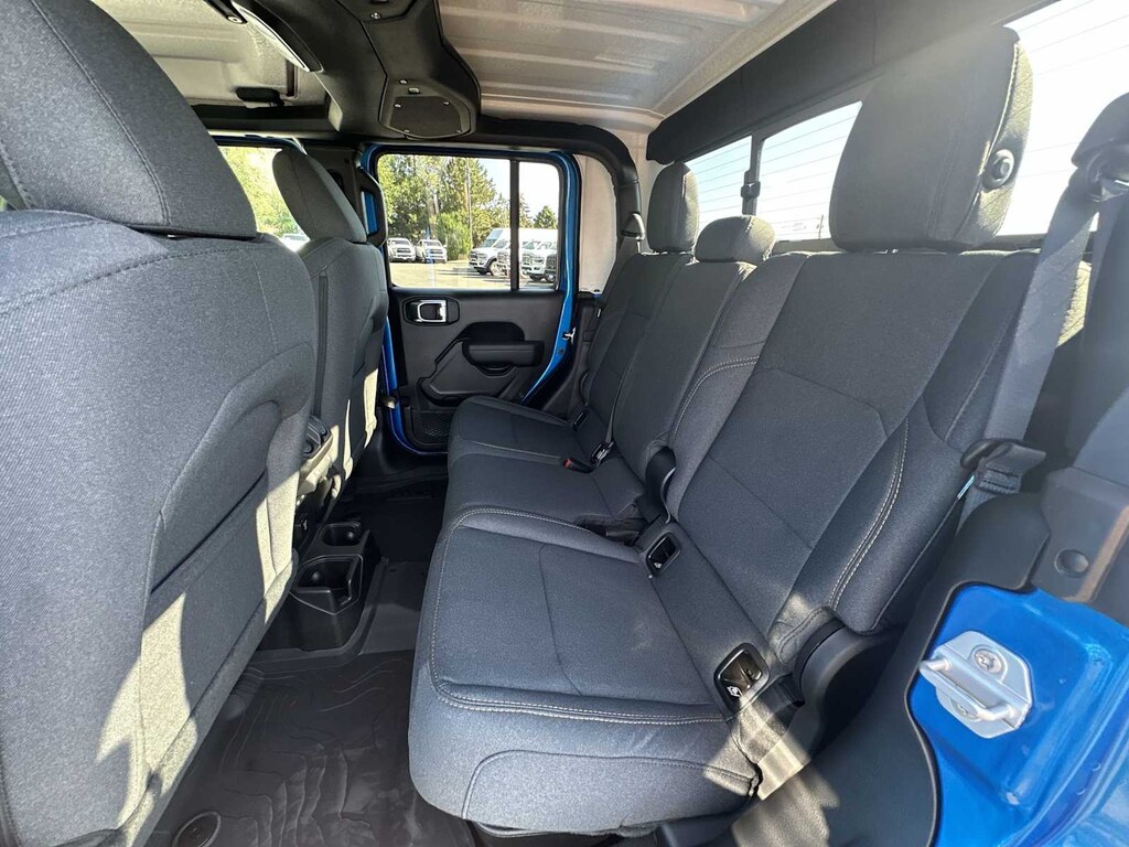 QUICK ORDER PACKAGE 24S SPORT S Engine: 3.6L V6 24V VVT UPG I w/ESS, Transmission: 8-Speed Automatic (850RE), Advanced Brake Assist, Power Heated Mirrors, Enhanced Adaptive Cruise Control, Automatic Headlamps, Deep Tint Sunscreen Windows, Premium Wrapped Steering Wheel, Security Alarm, Sun Visors w/Illuminated Vanity Mirrors, Full Speed Forward Collision Warning Plus, CONVENIENCE GROUP Emergency/Assistance Call, Front Door Locks 2-Door Passive Entry, Body Color Fender Flares (2-Piece), Remote Start System, Cluster 7.0 TFT Color Display, Universal Garage Door Opener, Daytime Running Lamp System, Heated Front Seats, Air Conditioning w/Auto Temp Control, Heated Steering Wheel, Corning Gorilla Glass, BLACK 3-PIECE HARD TOP Freedom Panel Storage Bag, Rear Window Defroster, Rear Sliding Window, ALPINE PREMIUM AUDIO SYSTEM, TECHNOLOGY GROUP SiriusXM Radio Service, 400W Inverter, HD Radio, Integrated Center Stack Radio, Rear View Auto Dim Mirror, Bluetooth® Wireless Speaker, Integrated Voice Command w/Bluetooth®, Radio: Uconnect 5 Nav w/12.3 Display, GPS Navigation, GPS Antenna Input, Media Hub w/2 Charge Only USBs, SiriusXM w/360L, 115V Auxiliary Power Outlet, Connected Travel & Traffic Services, TRANSMISSION: 8-SPEED AUTOMATIC (850RE) (STD), ENGINE: 3.6L V6 24V VVT UPG I W/ESS (STD). Jeep Sport S with Hydro Blue Pearlcoat exterior and Black interior features a V6 Cylinder Engine with 285 HP at 6400 RPM*.