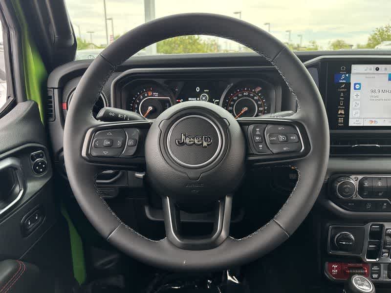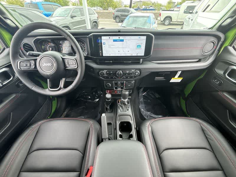 Smartly equipped for exhilarating exploring, our Rubicon X cabin offers heated Nappa leather power front seats, a heated-wrapped steering wheel, automatic climate control, and 12V/115V power outlets. Power infotainment technologies include a 12.3-inch touchscreen, a 7-inch driver display, full-color navigation, WiFi/Alexa compatibility, Apple CarPlay, Android Auto, voice control, Bluetooth, and Alpine audio.