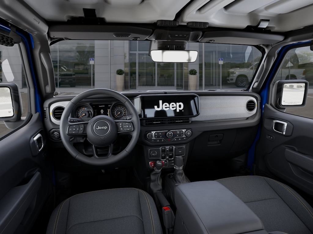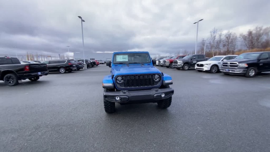 QUICK ORDER PACKAGE 24W WILLYS Engine: 3.6L V6 24V VVT UPG I w/ESS, Transmission: 8-Speed Automatic (850RE), LED Taillamps, Protection Sill Rails, 4-Wheel Drive Decal, Black Grille, 97 MPH Vehicle Max Speed Calibration, Body Color Fender Flares (2-Piece), Front Heavy Duty Red Accent Shock Absorbers, Daytime Running Lamps LED Accents, Front LED Fog Lamps, LED Premium Reflector Headlamps, E-Locker Rear Axle, Trailer Hitch Zoom, Class IV Receiver Hitch, Security Alarm, Mold In Color Bumper w/Gloss Black, Advanced Brake Assist, Heavy Duty Engine Cooling, Automatic Headlamps, Air Conditioning w/Auto Temp Control, Deep Tint Sunscreen Windows, Off-Road Plus Mode, Willys Hood Decal, Full Speed Forward Collision Warning Plus, Rear Heavy Duty Red Accent Shock Absorbers, Front Door Locks 2-Door, CONVENIENCE GROUP Emergency/Assistance Call, Front Door Locks 2-Door Passive Entry, Remote Start System, Universal Garage Door Opener, Daytime Running Lamp System, Heated Front Seats, Heated Steering Wheel, Corning Gorilla Glass, BLACK 3-PIECE HARD TOP Freedom Panel Storage Bag, Rear Window Defroster, Rear Sliding Window, SAFETY GROUP ParkSense Rear Park Assist System, Auto High Beam Headlamp Control, Blind Spot & Cross Path Detection, LED Taillamps, ALPINE PREMIUM AUDIO SYSTEM, TECHNOLOGY GROUP SiriusXM Radio Service, 400W Inverter, HD Radio, Integrated Center Stack Radio, Rear View Auto Dim Mirror, Bluetooth® Wireless Speaker, Integrated Voice Command w/Bluetooth®, Radio: Uconnect 5 Nav w/12.3 Display, GPS Navigation, GPS Antenna Input, Media Hub w/2 Charge Only USBs, SiriusXM w/360L, 115V Auxiliary Power Outlet, Connected Travel & Traffic Services, TRANSMISSION: 8-SPEED AUTOMATIC (850RE) (STD), ENGINE: 3.6L V6 24V VVT UPG I W/ESS (STD). Jeep Willys with Hydro Blue Pearlcoat exterior and Black interior features a V6 Cylinder Engine with 285 HP at 6400 RPM*.