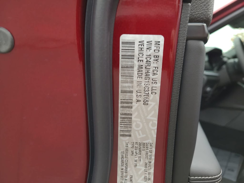 QUICK ORDER PACKAGE 23M ALTITUDE X Engine: 3.6L V6 24V VVT UPG I w/ESS, Transmission: 8-Speed Automatic 8HP50, Altitude X, Selectable Tire Fill Alert, Remote Start System, Rain Sensitive Windshield Wipers, Wireless Charging Pad, Heated Front Seats, Black Headliner, Power Sunroof, Delete Laredo Badge, 115V Auxiliary Power Outlet, Gloss Black Exterior Accents, Heated Steering Wheel, Power Liftgate, WHEELS: 20 X 8.5 GLOSS BLACK PAINTED ALUMINUM Tires: 265/50R20 BSW A/S LRR, TRAILER TOW PACKAGE Rear Load Levelling Suspension, Full-Size Spare Tire, 180 Amp Alternator, 7 & 4-Pin Wiring Harness, Heavy-Duty Engine Cooling, 18 Full-Size Steel Spare Wheel, Automatic Headlamp Levelling System, Trailer Hitch Zoom, Class IV Receiver Hitch, TRANSMISSION: 8-SPEED AUTOMATIC 8HP50 (STD), ENGINE: 3.6L V6 24V VVT UPG I W/ESS (STD). Jeep Altitude X with Velvet Red Pearlcoat exterior and Global Black interior features a V6 Cylinder Engine with 293 HP at 6400 RPM*.
