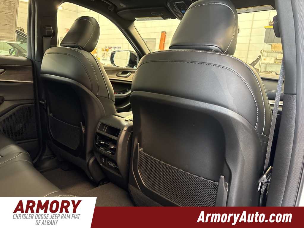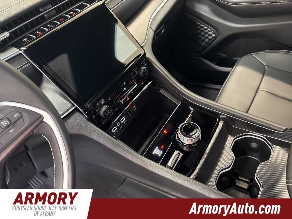 Grand Cherokee Limited is nicely equipped with Black Appearance Package (Gloss Black Exterior Accents and Wheels: 20 x 8.5 Gloss Black Painted Aluminum), Quick Order Package 23E, 4-Wheel Disc Brakes, 6 Speakers, ABS brakes, Active Noise Control System, Air Conditioning, Alloy wheels, AM/FM radio: SiriusXM with 360L, Anti-whiplash front head restraints, Audio memory, Auto High-beam Headlights, Automatic temperature control, Brake assist, Bumpers: body-color, Capri Leatherette Seats, Compass, Delay-off headlights, Driver door bin, Driver vanity mirror, Dual front impact airbags, Dual front side impact airbags, Dual-Pane Panoramic Sunroof, Electronic Stability Control, Emergency communication system, Four wheel independent suspension, Front anti-roll bar, Front Bucket Seats, Front Center Armrest w/Storage, Front dual zone A/C, Front fog lights, Front License Plate Bracket, Front reading lights, Fully automatic headlights, Garage door transmitter, Heated door mirrors, Heated front seats, Heated rear seats, Heated steering wheel, Illuminated entry, Knee airbag, Low tire pressure warning, Memory seat, Model Year Tracking, Navigation System, Normal Duty Suspension, Occupant sensing airbag, Outside temperature display, Overhead airbag, Overhead console, Panic alarm, ParkView Rear Back-Up Camera, Passenger door bin, Passenger vanity mirror, Power door mirrors, Power driver seat, Power Liftgate, Power passenger seat, Power steering, Power windows, Radio data system, Radio: Uconnect 5 Nav with 10.1 Display, Rear anti-roll bar, Rear reading lights, Rear window defroster, Rear window wiper, Remote keyless entry, Security system, Speed control, Speed-Sensitive Wipers, Split folding rear seat, Spoiler, Steering wheel mounted audio controls, Tachometer, Telescoping steering wheel, Tilt steering wheel, Traction control, Trip computer, Turn signal indicator mirrors, Variably intermittent wipers, Voltmeter, and Wheels: 18 x 8 Polished/Painted Aluminum.