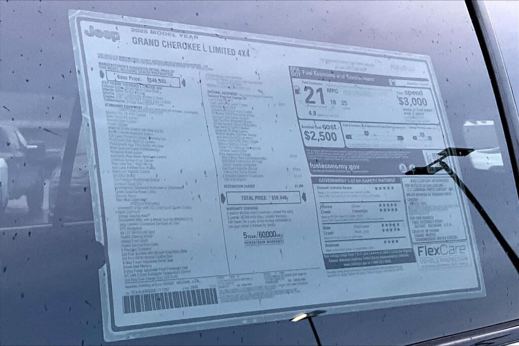 Lithia Chrysler Dodge Jeep Ram of Tri-Cities is pleased to offer this Bright White Clearcoat 2025 Jeep Grand Cherokee L Limited for purchase, this vehicle is well equipped with many features including:Black Appearance Package (Gloss Black Exterior Accents and Wheels: 20 x 8.5 Gloss Black Painted Aluminum), Luxury Tech Group II (2nd Row Manual Window Shades, Auto-Dimming Exterior Driver Mirror, Capri Leatherette with Axis II Seats, Integrated Off-Road Camera, Intersection Collision Assist System, Memory Steering Column, ParkSense Front/Rear Park Assist with Stop, Passive Entry - Front/Rear Doors, Liftgate, Power Tilt/Telescope Steering Column, Rain Sensitive Windshield Wipers, Rear Back Up Camera Washer, Rearview Autodim Digital Display Mirror, Surround View Camera System, Ventilated Front Seats, and Wireless Charging Pad), Quick Order Package 22E, 3.45 Rear Axle Ratio, 3rd row seats: split-bench, 4-Wheel Disc Brakes, 506 Watt Amplifier, 6 Speakers, 9 Amplified Speakers with Subwoofer, ABS brakes, Active Noise Control System, Air Conditioning, Alloy wheels, AM/FM radio: SiriusXM with 360L, Anti-whiplash front head restraints, Audio memory, Auto High-beam Headlights, Automatic temperature control, Brake assist, Bumpers: body-color, Capri Leatherette Seats, Compass, Delay-off headlights, Driver door bin, Driver vanity mirror, Dual front impact airbags, Dual front side impact airbags, Dual-Pane Panoramic Sunroof, Electronic Stability Control, Emergency communication system, Four wheel independent suspension, Front anti-roll bar, Front Bucket Seats, Front Center Armrest w/Storage, Front dual zone A/C, Front fog lights, Front License Plate Bracket, Front reading lights, Fully automatic headlights, Garage door transmitter, Heated door mirrors, Heated front seats, Heated rear seats, Heated steering wheel, Illuminated entry, Interior Rear Facing Camera, Knee airbag, Low tire pressure warning, Manual Fold Seatbacks, Memory seat, Model Year Tracking, Navigation System, Normal Duty Suspension, Occupant sensing airbag, Outside temperature display, Overhead airbag, Overhead console, Panic alarm, ParkView Rear Back-Up Camera, Passenger door bin, Passenger vanity mirror, Power door mirrors, Power driver seat, Power Liftgate, Power passenger seat, Power steering, Power windows, Radio data system, Radio: Uconnect 5 Nav with 10.1 Display, Rear air conditioning, Rear anti-roll bar, Rear reading lights, Rear window defroster, Rear window wiper, Reclining 3rd row seat, Remote keyless entry, Security system, Speed control, Speed-Sensitive Wipers, Split folding rear seat, Spoiler, Steering wheel mounted audio controls, Tachometer, Telescoping steering wheel, Tilt steering wheel, Traction control, Trip computer, Turn signal indicator mirrors, Variably intermittent wipers, Voltmeter, and Wheels: 18 x 8.0 Polished/Painted Aluminum.