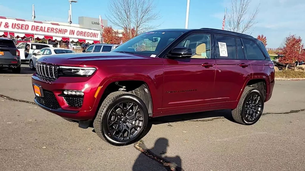 QUICK ORDER PACKAGE 23U SUMMIT RESERVE Engine: 3.6L V6 24V VVT UPG I w/ESS, Transmission: 8-Speed Automatic 8HP50, 950 Watt Amplifier, Deluxe Headliner, Palermo Leather Door Trim, Summit Badge, Ventilated Rear Seats, Summit, ADV PROTECH GROUP IV Windshield Wiper De-Icer, Head Up Display, Rearview Autodim Digital Display Mirror, Night Vision w/Pedestrian-Animal Detection, HIGH ALTITUDE PACKAGE Wheels: 21 x 9 Black Painted Aluminum, Painted Door Cladding, Gloss Black Exterior Accents, Neutral Gray Exterior Accents, TRANSMISSION: 8-SPEED AUTOMATIC 8HP50 (STD), ENGINE: 3.6L V6 24V VVT UPG I W/ESS (STD). Jeep Summit Reserve with Velvet Red Pearlcoat exterior and Tupelo/Black interior features a V6 Cylinder Engine with 293 HP at 6400 RPM*.