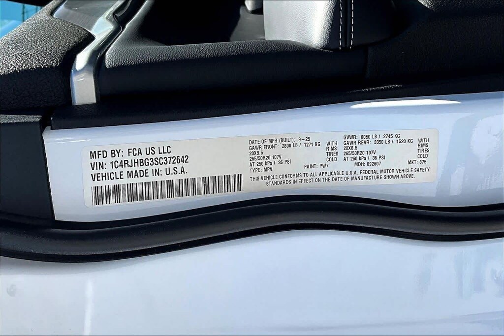 Bright White Clearcoat 2025 Jeep Grand Cherokee Limited 4WD 8-Speed Automatic 3.6L V6 24V VVT FRESH OIL CHANGE, 4WD, 4-Wheel Disc Brakes, 6 Speakers, ABS brakes, Active Noise Control System, Air Conditioning, Alloy wheels, AM/FM radio: SiriusXM with 360L, Anti-whiplash front head restraints, Audio memory, Auto High-beam Headlights, Automatic temperature control, Black Appearance Package, Brake assist, Bumpers: body-color, Capri Leatherette Seats, Compass, Delay-off headlights, Driver door bin, Driver vanity mirror, Dual front impact airbags, Dual front side impact airbags, Electronic Stability Control, Emergency communication system, Four wheel independent suspension, Front anti-roll bar, Front Bucket Seats, Front Center Armrest w/Storage, Front dual zone A/C, Front fog lights, Front License Plate Bracket, Front reading lights, Fully automatic headlights, Garage door transmitter, Gloss Black Exterior Accents, Heated door mirrors, Heated front seats, Heated rear seats, Heated steering wheel, Illuminated entry, Knee airbag, Low tire pressure warning, Memory seat, Model Year Tracking, Navigation System, Normal Duty Suspension, Occupant sensing airbag, Outside temperature display, Overhead airbag, Overhead console, Panic alarm, ParkView Rear Back-Up Camera, Passenger door bin, Passenger vanity mirror, Power door mirrors, Power driver seat, Power Liftgate, Power passenger seat, Power steering, Power windows, Quick Order Package 23E, Radio data system, Radio: Uconnect 5 Nav with 10.1 Display, Rear anti-roll bar, Rear reading lights, Rear window defroster, Rear window wiper, Remote keyless entry, Security system, Speed control, Speed-Sensitive Wipers, Split folding rear seat, Spoiler, Steering wheel mounted audio controls, Tachometer, Telescoping steering wheel, Tilt steering wheel, Traction control, Trip computer, Turn signal indicator mirrors, Variably intermittent wipers, Voltmeter, Wheels: 18 x 8 Polished/Painted Aluminum, Wheels: 20 x 8.5 Gloss Black Painted Aluminum, 4WD.