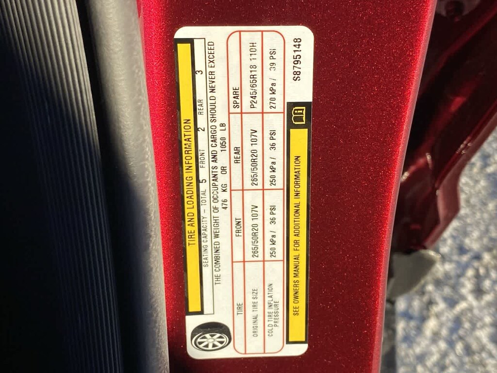 - Front tires: 265/50VR20.0