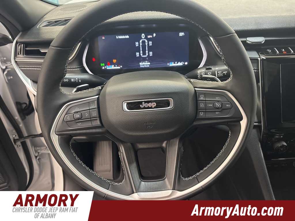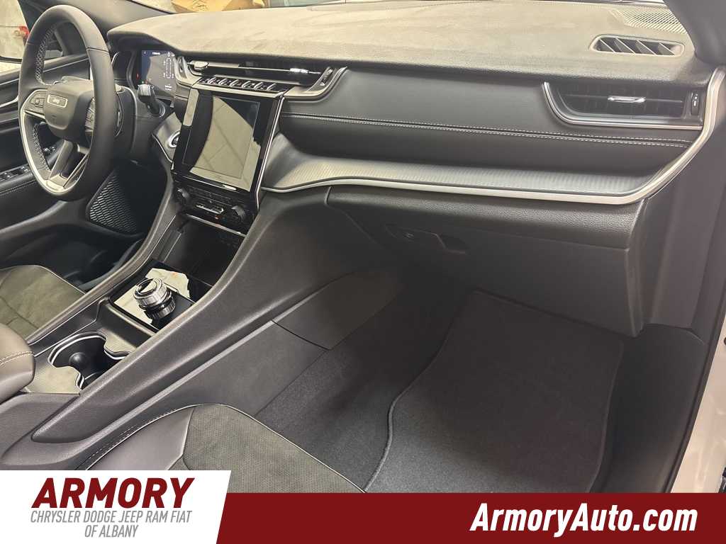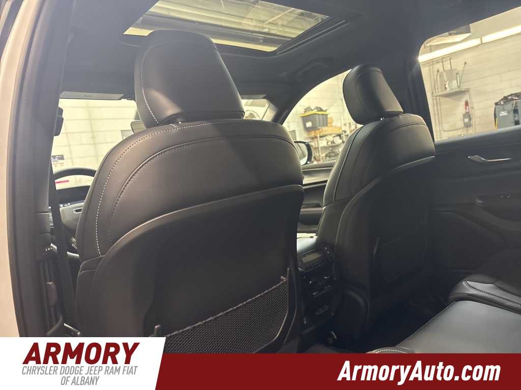 Grand Cherokee L Altitude X is nicely equipped with Quick Order Package 23M Altitude X (115V Auxiliary Power Outlet, 3rd Row Charge-Only USB Ports, Altitude X, Black Headliner, Capri Leatherette/Suede Seats, Delete Laredo Badge, Gloss Black Exterior Accents, Heated Front Seats, Heated Steering Wheel, Power Liftgate, Power Sunroof, Rain Sensitive Windshield Wipers, Remote Start System, Selectable Tire Fill Alert, Wheels: 18 x 8.0 Fully Painted Aluminum 1, and Wireless Charging Pad), 2nd Row 60/40 Bench with Manual Tip/Slide, 2nd Row Seat Center Armrest/Cupholders, 3 Rear Seat Head Restraints, 3.45 Rear Axle Ratio, 3rd row seats: split-bench, 4-Wheel Disc Brakes, 6 Speakers, 7-Passenger Seating, ABS brakes, Air Conditioning, Alloy wheels, AM/FM radio: SiriusXM, Anti-whiplash front head restraints, Automatic temperature control, Brake assist, Bumpers: body-color, Center Rear 3-Point Seat Belt, Cloth Seats, Compass, Delay-off headlights, Driver door bin, Driver vanity mirror, Dual front impact airbags, Dual front side impact airbags, Electronic Stability Control, Emergency communication system, Four wheel independent suspension, Front anti-roll bar, Front Bucket Seats, Front Center Armrest w/Storage, Front dual zone A/C, Front License Plate Bracket, Front reading lights, Fully automatic headlights, Heated door mirrors, Illuminated entry, Knee airbag, Low tire pressure warning, Manual Fold Seatbacks, Model Year Tracking, Normal Duty Suspension, Occupant sensing airbag, Outside temperature display, Overhead airbag, Overhead console, Panic alarm, ParkView Rear Back-Up Camera, Passenger door bin, Passenger vanity mirror, Power door mirrors, Power driver seat, Power steering, Power windows, Radio data system, Radio: Uconnect 5 with 8.4 Display, Rear air conditioning, Rear anti-roll bar, Rear reading lights, Rear window defroster, Rear window wiper, Reclining 3rd row seat, Remote keyless entry, Security system, Speed control, Speed-Sensitive Wipers, Split folding rear seat, Spoiler, Steering wheel mounted audio controls, Tachometer, Telescoping steering wheel, Tilt steering wheel, Traction control, Trip computer, Variably intermittent wipers, Voltmeter, and Wheels: 18 x 8.0 Fully Painted Aluminum.