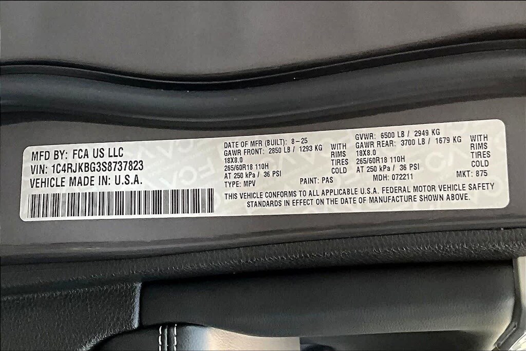 LUXURY TECH GROUP II Power Tilt/Telescope Steering Column, Integrated Off-Road Camera, Surround View Camera System, Rain Sensitive Windshield Wipers, ParkSense Front/Rear Park Assist w/Stop, Passive Entry - Front/Rear Doors, Liftgate, Wireless Charging Pad, Rear Back Up Camera Washer, Ventilated Front Seats, Auto Dim Exterior Driver Mirror, 2nd Row Manual Window Shades, Intersection Collision Assist System, Rearview Autodim Digital Display Mirror, Memory Steering Column, DUAL PANE PANORAMIC SUNROOF Interior Rear Facing Camera, TRAILER TOW PACKAGE Rear Load Leveling Suspension, Full Size Spare Tire, 7 & 4 Pin Wiring Harness, Dual Exhaust Tips, Heavy Duty Engine Cooling, 18 Full-Size Steel Spare Wheel, Automatic Headlamp Leveling System, Trailer Hitch Zoom, 220 Amp Alternator, Class IV Receiver Hitch, TRANSMISSION: 8-SPEED AUTOMATIC (8HP50), ENGINE: 3.6L V6 24V VVT UPG I W/ESS (STD). Jeep Limited with Baltic Gray Metallic Clearcoat exterior and Global Black interior features a V6 Cylinder Engine with 293 HP at 6400 RPM*.