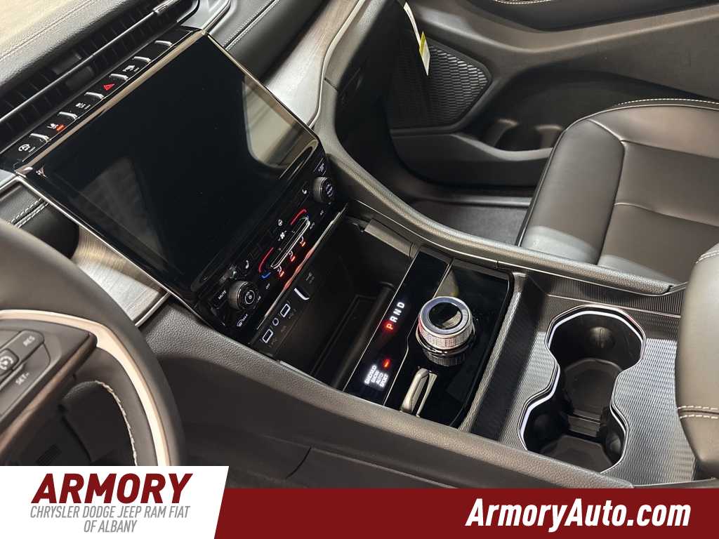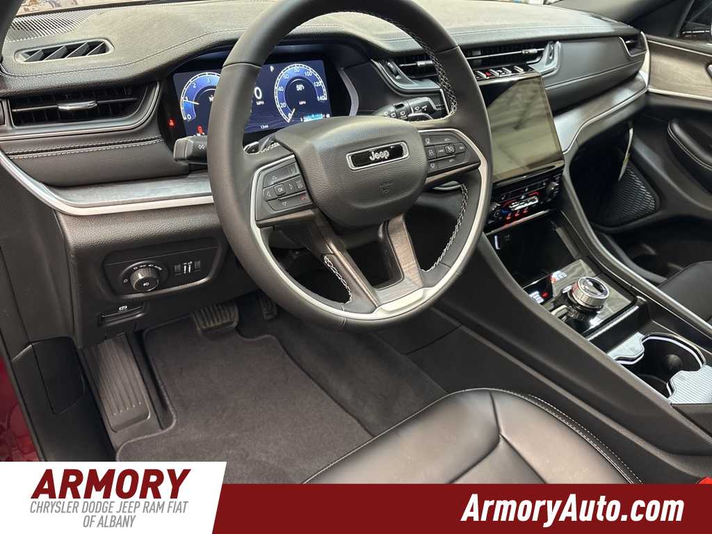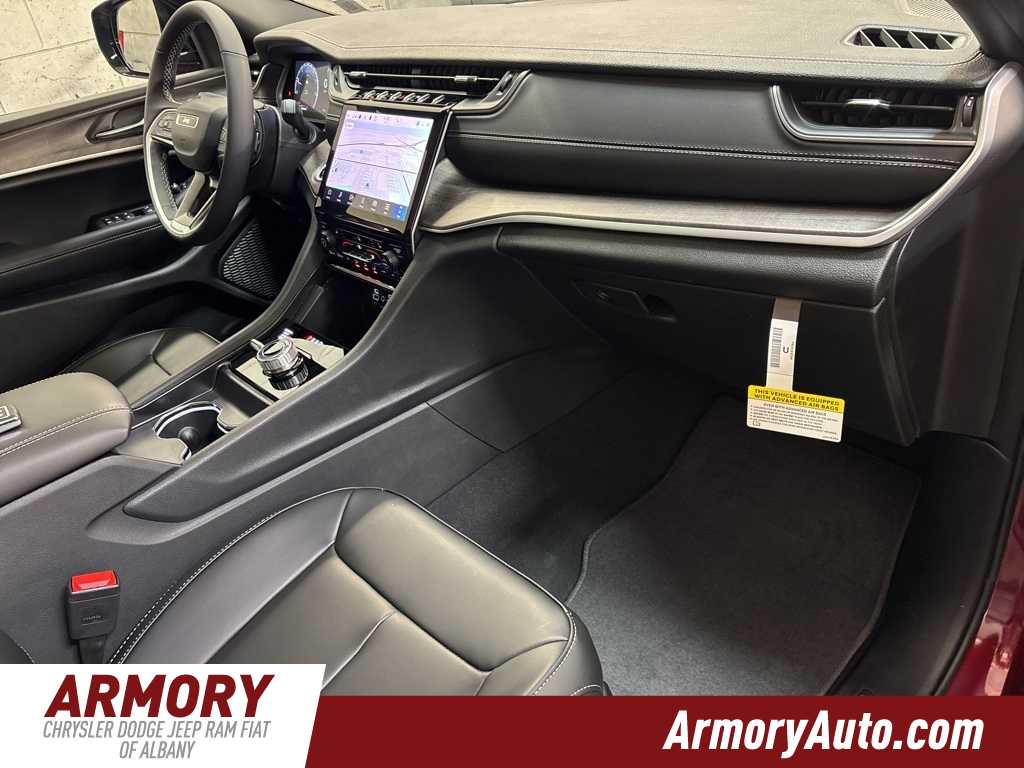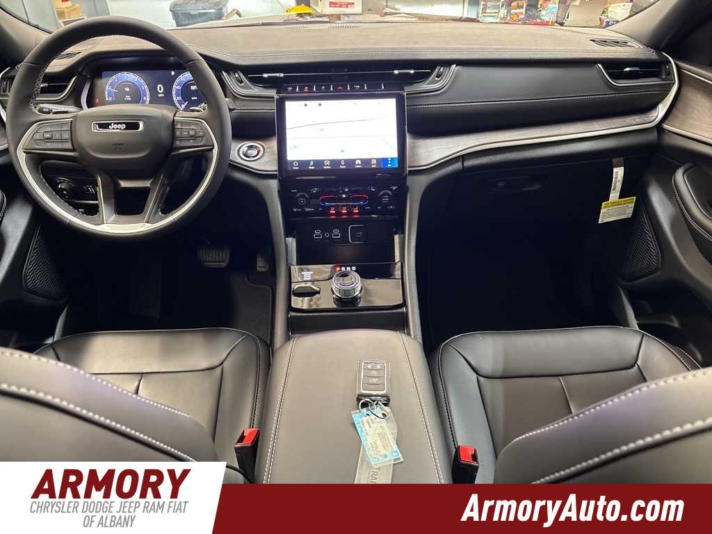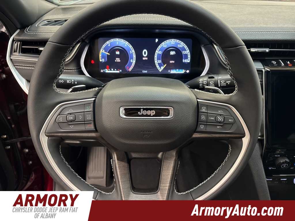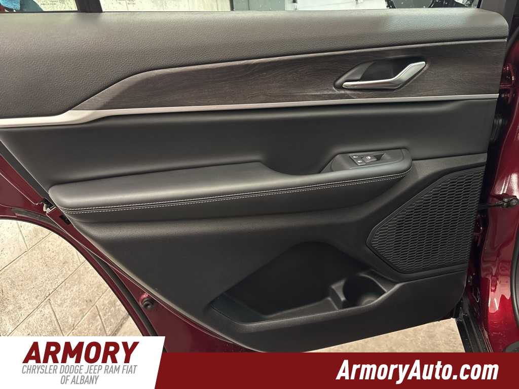 Grand Cherokee L Limited is nicely equipped with Black Appearance Package (Gloss Black Exterior Accents and Wheels: 20 x 8.5 Gloss Black Painted Aluminum), Quick Order Package 23E, 2nd Row 60/40 Bench with Manual Tip/Slide, 2nd Row Seat Center Armrest/Cupholders, 3 Rear Seat Head Restraints, 3.45 Rear Axle Ratio, 3rd row seats: split-bench, 4-Wheel Disc Brakes, 6 Speakers, 7-Passenger Seating, ABS brakes, Active Noise Control System, Air Conditioning, Alloy wheels, AM/FM radio: SiriusXM with 360L, Anti-whiplash front head restraints, Audio memory, Auto High-beam Headlights, Automatic temperature control, Brake assist, Bumpers: body-color, Capri Leatherette Seats, Center Rear 3-Point Seat Belt, Compass, Delay-off headlights, Driver door bin, Driver vanity mirror, Dual front impact airbags, Dual front side impact airbags, Dual-Pane Panoramic Sunroof, Electronic Stability Control, Emergency communication system, Four wheel independent suspension, Front anti-roll bar, Front Bucket Seats, Front Center Armrest w/Storage, Front dual zone A/C, Front fog lights, Front License Plate Bracket, Front reading lights, Fully automatic headlights, Garage door transmitter, Heated door mirrors, Heated front seats, Heated rear seats, Heated steering wheel, Illuminated entry, Interior Rear Facing Camera, Knee airbag, Low tire pressure warning, Manual Fold Seatbacks, Memory seat, Model Year Tracking, Navigation System, Normal Duty Suspension, Occupant sensing airbag, Outside temperature display, Overhead airbag, Overhead console, Panic alarm, ParkView Rear Back-Up Camera, Passenger door bin, Passenger vanity mirror, Power door mirrors, Power driver seat, Power Liftgate, Power passenger seat, Power steering, Power windows, Radio data system, Radio: Uconnect 5 Nav with 10.1 Display, Rear air conditioning, Rear anti-roll bar, Rear reading lights, Rear window defroster, Rear window wiper, Reclining 3rd row seat, Remote keyless entry, Security system, Speed control, Speed-Sensitive Wipers, Split folding rear seat, Spoiler, Steering wheel mounted audio controls, Tachometer, Telescoping steering wheel, Tilt steering wheel, Traction control, Trip computer, Turn signal indicator mirrors, Variably intermittent wipers, Voltmeter, and Wheels: 18 x 8.0 Polished/Painted Aluminum.
