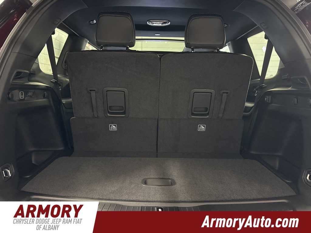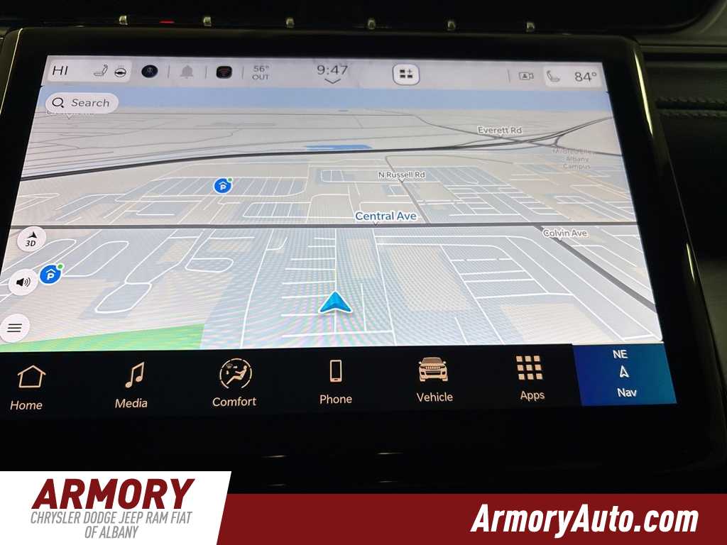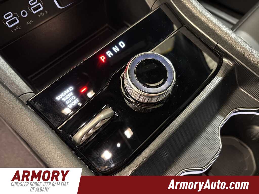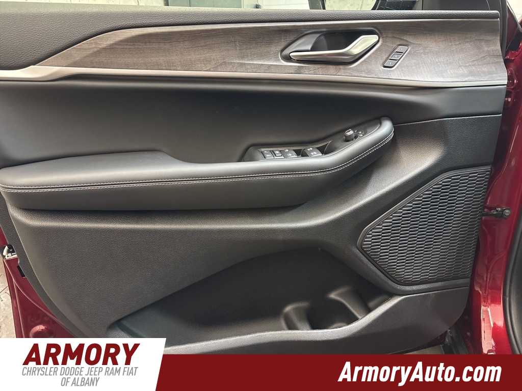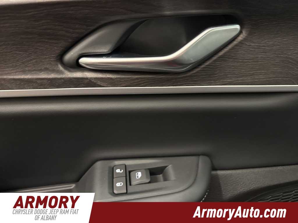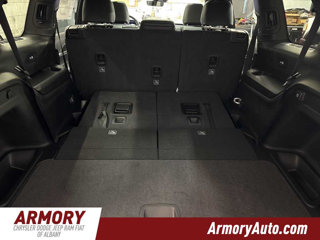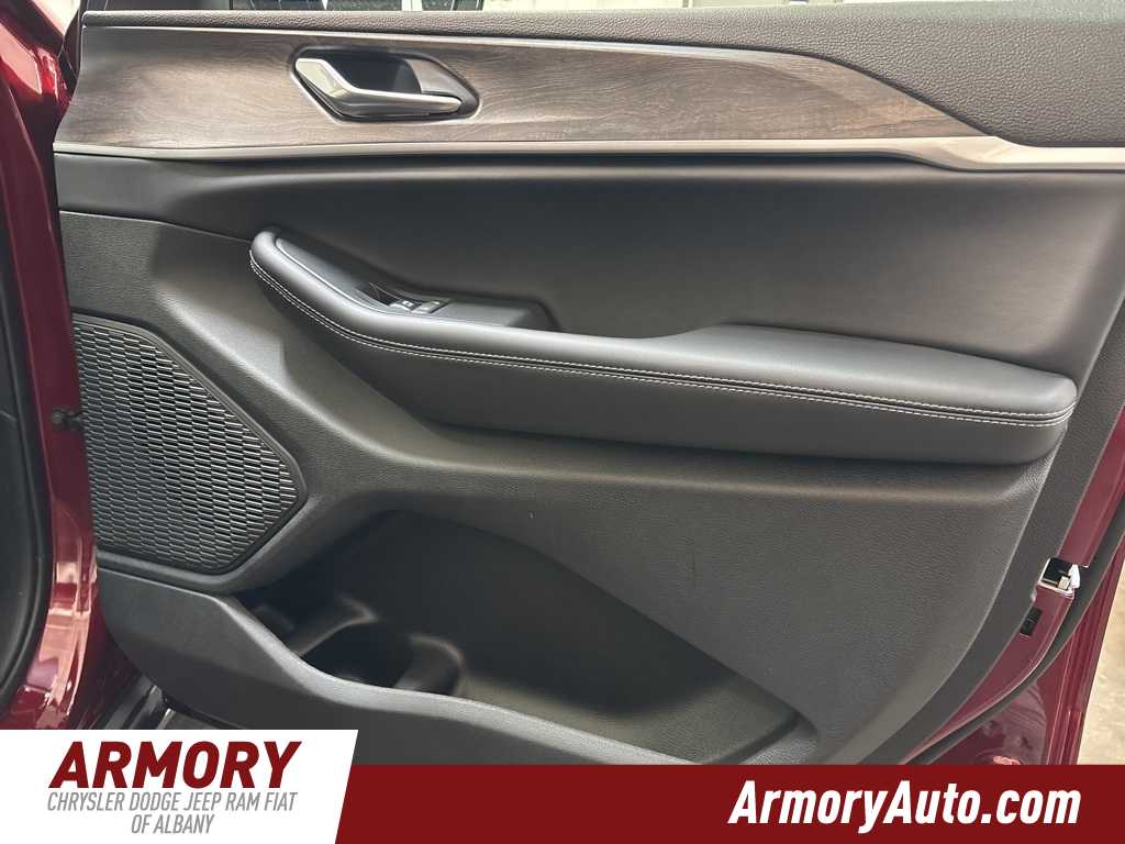Grand Cherokee L Limited is nicely equipped with Black Appearance Package (Gloss Black Exterior Accents and Wheels: 20 x 8.5 Gloss Black Painted Aluminum), Quick Order Package 23E, 2nd Row 60/40 Bench with Manual Tip/Slide, 2nd Row Seat Center Armrest/Cupholders, 3 Rear Seat Head Restraints, 3.45 Rear Axle Ratio, 3rd row seats: split-bench, 4-Wheel Disc Brakes, 6 Speakers, 7-Passenger Seating, ABS brakes, Active Noise Control System, Air Conditioning, Alloy wheels, AM/FM radio: SiriusXM with 360L, Anti-whiplash front head restraints, Audio memory, Auto High-beam Headlights, Automatic temperature control, Brake assist, Bumpers: body-color, Capri Leatherette Seats, Center Rear 3-Point Seat Belt, Compass, Delay-off headlights, Driver door bin, Driver vanity mirror, Dual front impact airbags, Dual front side impact airbags, Dual-Pane Panoramic Sunroof, Electronic Stability Control, Emergency communication system, Four wheel independent suspension, Front anti-roll bar, Front Bucket Seats, Front Center Armrest w/Storage, Front dual zone A/C, Front fog lights, Front License Plate Bracket, Front reading lights, Fully automatic headlights, Garage door transmitter, Heated door mirrors, Heated front seats, Heated rear seats, Heated steering wheel, Illuminated entry, Interior Rear Facing Camera, Knee airbag, Low tire pressure warning, Manual Fold Seatbacks, Memory seat, Model Year Tracking, Navigation System, Normal Duty Suspension, Occupant sensing airbag, Outside temperature display, Overhead airbag, Overhead console, Panic alarm, ParkView Rear Back-Up Camera, Passenger door bin, Passenger vanity mirror, Power door mirrors, Power driver seat, Power Liftgate, Power passenger seat, Power steering, Power windows, Radio data system, Radio: Uconnect 5 Nav with 10.1 Display, Rear air conditioning, Rear anti-roll bar, Rear reading lights, Rear window defroster, Rear window wiper, Reclining 3rd row seat, Remote keyless entry, Security system, Speed control, Speed-Sensitive Wipers, Split folding rear seat, Spoiler, Steering wheel mounted audio controls, Tachometer, Telescoping steering wheel, Tilt steering wheel, Traction control, Trip computer, Turn signal indicator mirrors, Variably intermittent wipers, Voltmeter, and Wheels: 18 x 8.0 Polished/Painted Aluminum.
