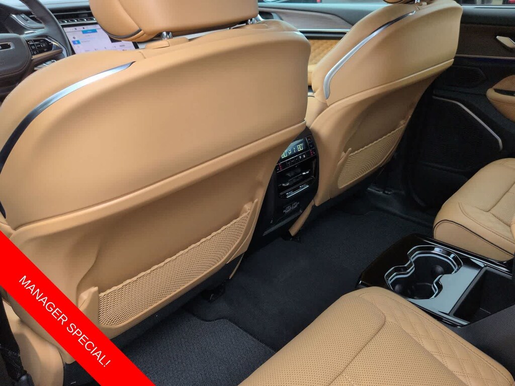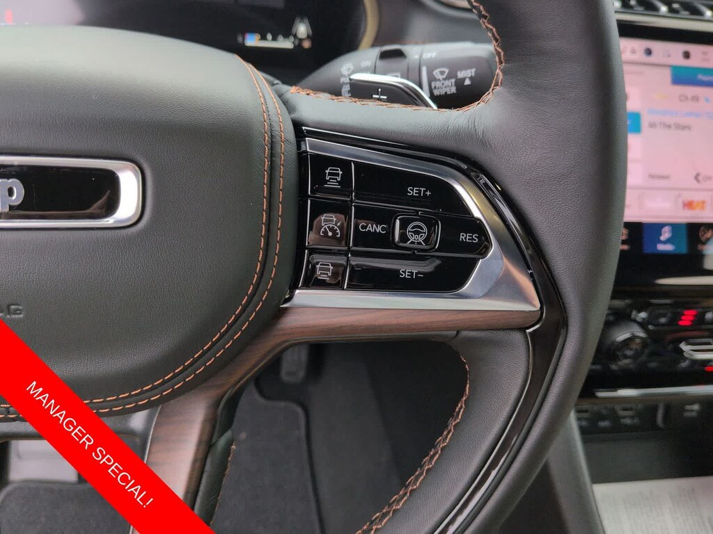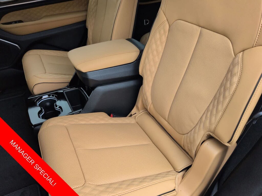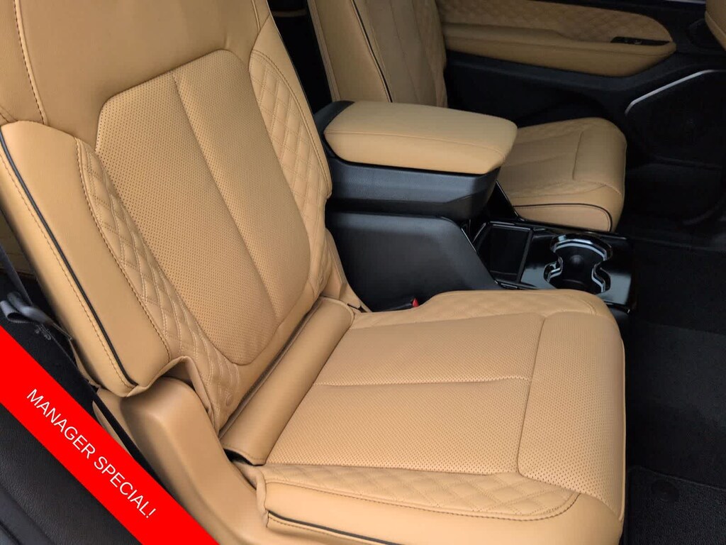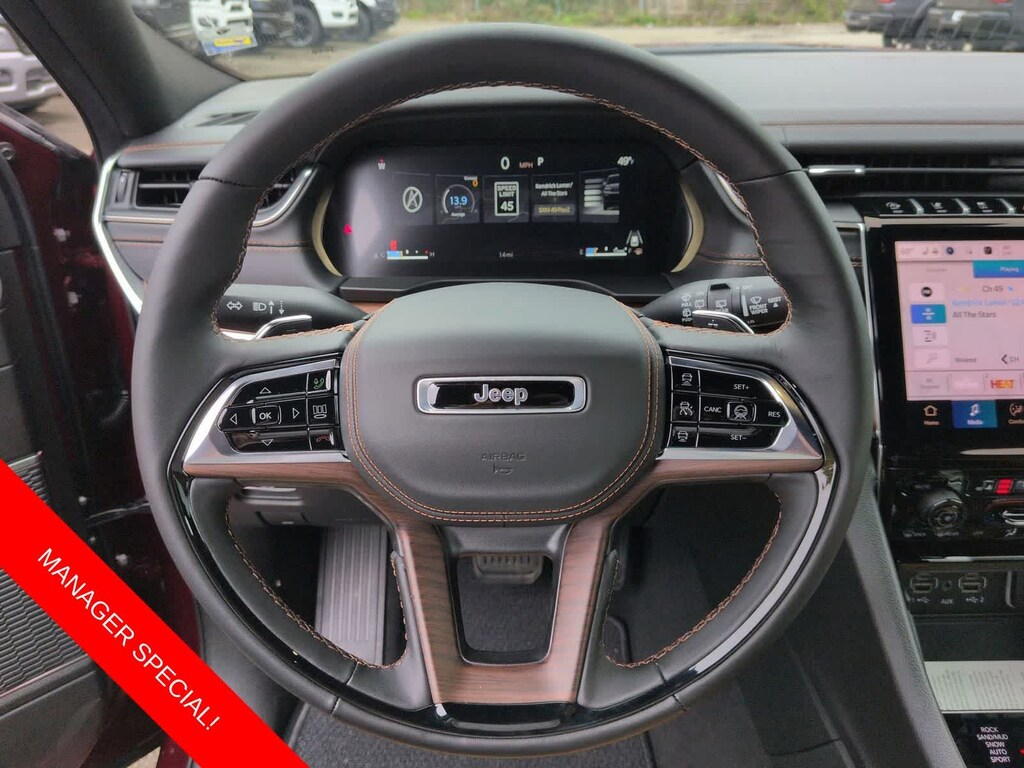 Grand Cherokee L Summit is nicely equipped with Luxury Tech Group V (2nd Row Manual Window Shades and Wireless Charging Pad), Obsidian Package (Gloss Black Exterior Accents, Neutral Gray Exterior Accents, Painted Door Cladding, and Wheels: 21 x 9 Black Painted Aluminum), Quick Order Package 23S, 10 Speakers, 3.45 Rear Axle Ratio, 3rd row seats: split-bench, 4-Wheel Disc Brakes, ABS brakes, Active Noise Control System, Adaptive suspension, Air Conditioning, Alloy wheels, AM/FM radio: SiriusXM with 360L, Anti-whiplash front head restraints, Audio memory, Auto High-beam Headlights, Auto-dimming door mirrors, Auto-dimming Rear-View mirror, Auto-leveling suspension, Automatic temperature control, Brake assist, Bumpers: body-color, Compass, Delay-off headlights, Driver door bin, Driver vanity mirror, Dual front impact airbags, Dual front side impact airbags, Electronic Stability Control, Emergency communication system, Four wheel independent suspension, Front anti-roll bar, Front Bucket Seats, Front Center Armrest w/Storage, Front dual zone A/C, Front fog lights, Front reading lights, Fully automatic headlights, Garage door transmitter, Genuine wood dashboard insert, Genuine wood door panel insert, Heated door mirrors, Heated front seats, Heated rear seats, Heated steering wheel, Illuminated entry, Knee airbag, Leather steering wheel, Low tire pressure warning, Memory seat, Model Year Tracking, Nappa Leather Seats, Navigation System, Normal Duty Suspension, Occupant sensing airbag, Outside temperature display, Overhead airbag, Overhead console, Panic alarm, Passenger door bin, Passenger vanity mirror, Power door mirrors, Power driver seat, Power Fold Seatbacks, Power Liftgate, Power moonroof, Power passenger seat, Power steering, Power windows, Radio data system, Radio: Uconnect 5 Nav with 10.1 Display, Rain sensing wipers, Rear air conditioning, Rear anti-roll bar, Rear dual zone A/C, Rear reading lights, Rear seat center armrest, Rear window defroster, Rear window wiper, Reclining 3rd row seat, Remote keyless entry, Security system, Speed control, Speed-Sensitive Wipers, Split folding rear seat, Spoiler, Steering wheel memory, Steering wheel mounted audio controls, Tachometer, Telescoping steering wheel, Tilt steering wheel, Traction control, Trip computer, Turn signal indicator mirrors, Variably intermittent wipers, Ventilated front seats, Voltmeter, and Wheels: 20 x 8.5 Fully Painted Aluminum Silver.