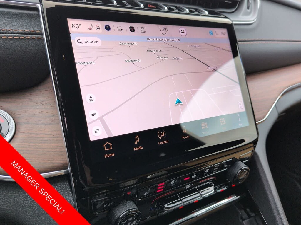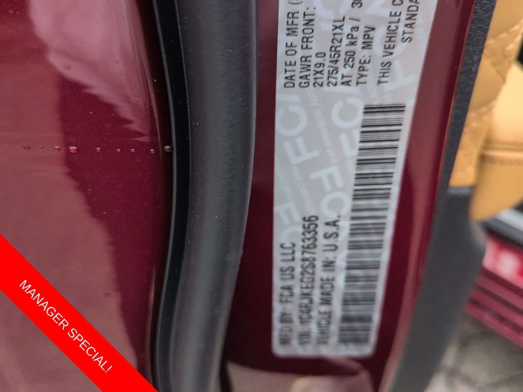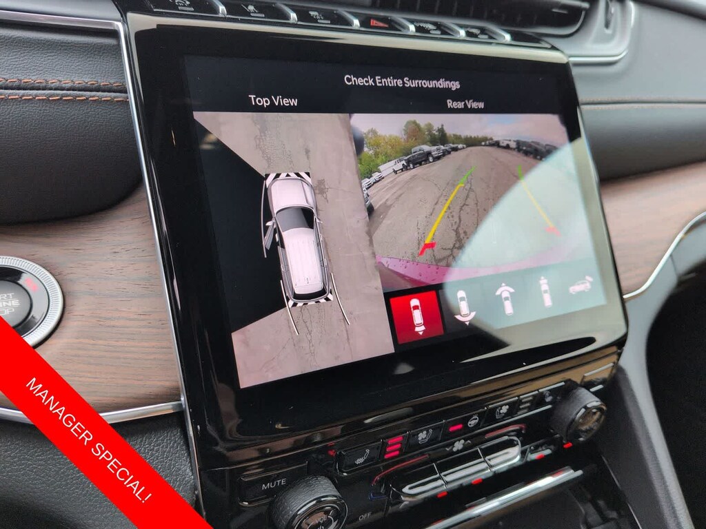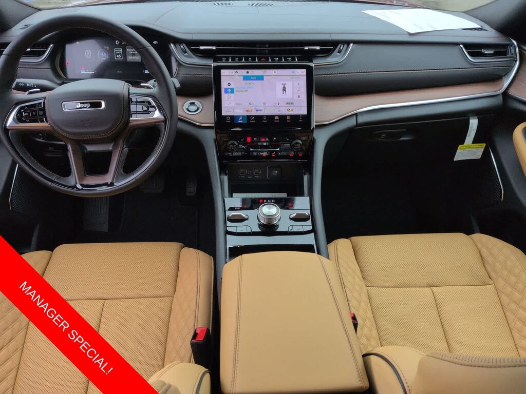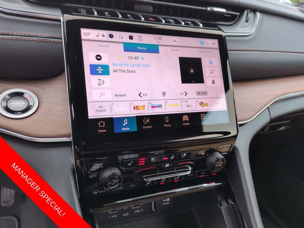 Grand Cherokee L Summit is nicely equipped with Luxury Tech Group V (2nd Row Manual Window Shades and Wireless Charging Pad), Obsidian Package (Gloss Black Exterior Accents, Neutral Gray Exterior Accents, Painted Door Cladding, and Wheels: 21 x 9 Black Painted Aluminum), Quick Order Package 23S, 10 Speakers, 3.45 Rear Axle Ratio, 3rd row seats: split-bench, 4-Wheel Disc Brakes, ABS brakes, Active Noise Control System, Adaptive suspension, Air Conditioning, Alloy wheels, AM/FM radio: SiriusXM with 360L, Anti-whiplash front head restraints, Audio memory, Auto High-beam Headlights, Auto-dimming door mirrors, Auto-dimming Rear-View mirror, Auto-leveling suspension, Automatic temperature control, Brake assist, Bumpers: body-color, Compass, Delay-off headlights, Driver door bin, Driver vanity mirror, Dual front impact airbags, Dual front side impact airbags, Electronic Stability Control, Emergency communication system, Four wheel independent suspension, Front anti-roll bar, Front Bucket Seats, Front Center Armrest w/Storage, Front dual zone A/C, Front fog lights, Front reading lights, Fully automatic headlights, Garage door transmitter, Genuine wood dashboard insert, Genuine wood door panel insert, Heated door mirrors, Heated front seats, Heated rear seats, Heated steering wheel, Illuminated entry, Knee airbag, Leather steering wheel, Low tire pressure warning, Memory seat, Model Year Tracking, Nappa Leather Seats, Navigation System, Normal Duty Suspension, Occupant sensing airbag, Outside temperature display, Overhead airbag, Overhead console, Panic alarm, Passenger door bin, Passenger vanity mirror, Power door mirrors, Power driver seat, Power Fold Seatbacks, Power Liftgate, Power moonroof, Power passenger seat, Power steering, Power windows, Radio data system, Radio: Uconnect 5 Nav with 10.1 Display, Rain sensing wipers, Rear air conditioning, Rear anti-roll bar, Rear dual zone A/C, Rear reading lights, Rear seat center armrest, Rear window defroster, Rear window wiper, Reclining 3rd row seat, Remote keyless entry, Security system, Speed control, Speed-Sensitive Wipers, Split folding rear seat, Spoiler, Steering wheel memory, Steering wheel mounted audio controls, Tachometer, Telescoping steering wheel, Tilt steering wheel, Traction control, Trip computer, Turn signal indicator mirrors, Variably intermittent wipers, Ventilated front seats, Voltmeter, and Wheels: 20 x 8.5 Fully Painted Aluminum Silver.