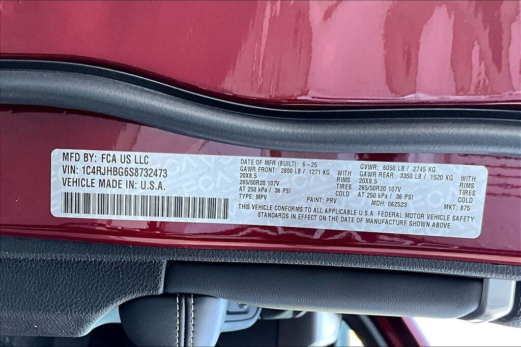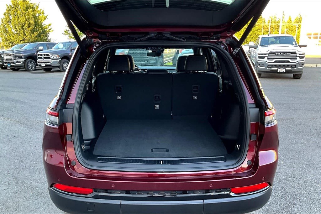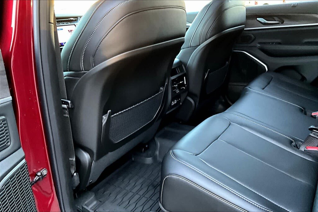 LUXURY TECH GROUP II Power Tilt/Telescope Steering Column, Integrated Off-Road Camera, Surround View Camera System, Rain Sensitive Windshield Wipers, ParkSense Front/Rear Park Assist w/Stop, Front/Rear Doors & Liftgate w/Passive Entry, Wireless Charging Pad, Rear Back-Up Camera Washer, Ventilated Front Seats, Auto Dim Exterior Driver Mirror, 2nd-Row Manual Window Shades, Intersection Collision Assist System, Rearview Autodim Digital Display Mirror, Memory Steering Column, BLACK APPEARANCE PACKAGE Tires: 265/50R20 A/S Performance, Wheels: 20 x 8.5 Gloss Black Painted Aluminum, Gloss Black Exterior Accents, DUAL-PANE PANORAMIC SUNROOF, 9 AMPLIFIED SPEAKERS W/SUBWOOFER 506 Watt Amplifier, TRAILER TOW PACKAGE Rear Load Levelling Suspension, Full-Size Spare Tire, 7 & 4-Pin Wiring Harness, Heavy-Duty Engine Cooling, 18 Full-Size Steel Spare Wheel, Automatic Headlamp Levelling System, Trailer Hitch Zoom, 220 Amp Alternator, Class IV Receiver Hitch, TRANSMISSION: 8-SPEED AUTOMATIC 8HP50, ENGINE: 3.6L V6 24V VVT UPG I W/ESS (STD). Jeep Limited with Velvet Red Pearlcoat exterior and Global Black interior features a V6 Cylinder Engine with 293 HP at 6400 RPM*.