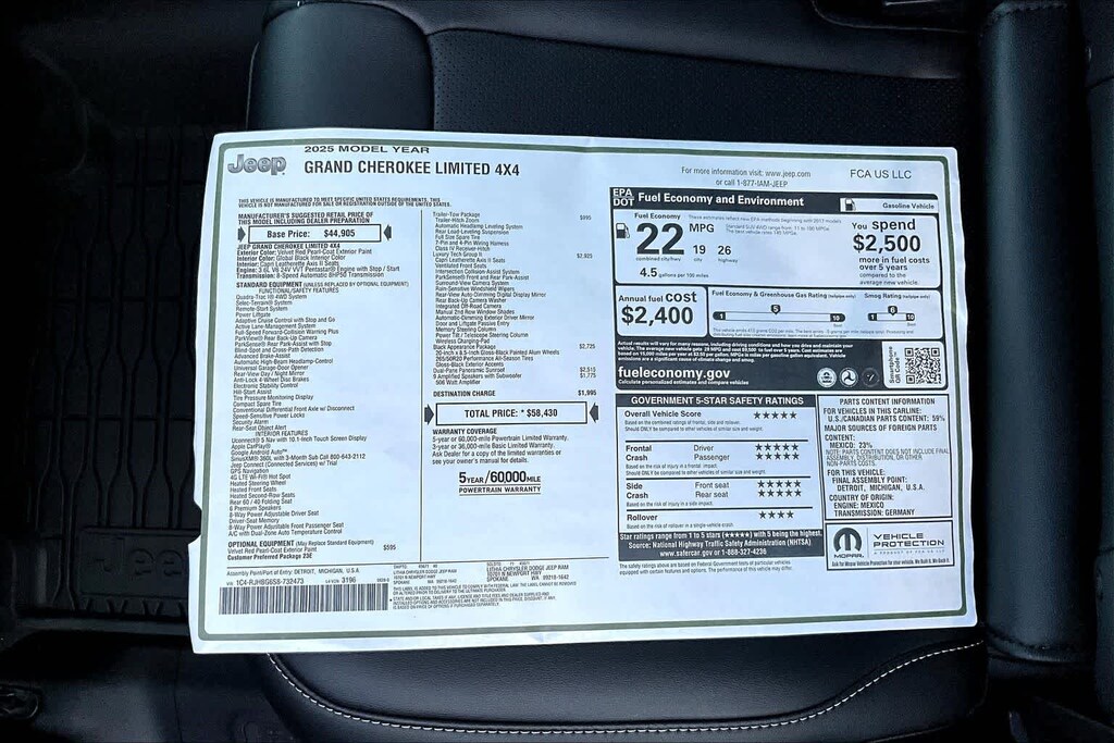 - Powertrain warranty: 60 months/60,000miles