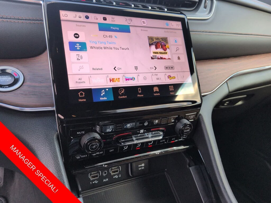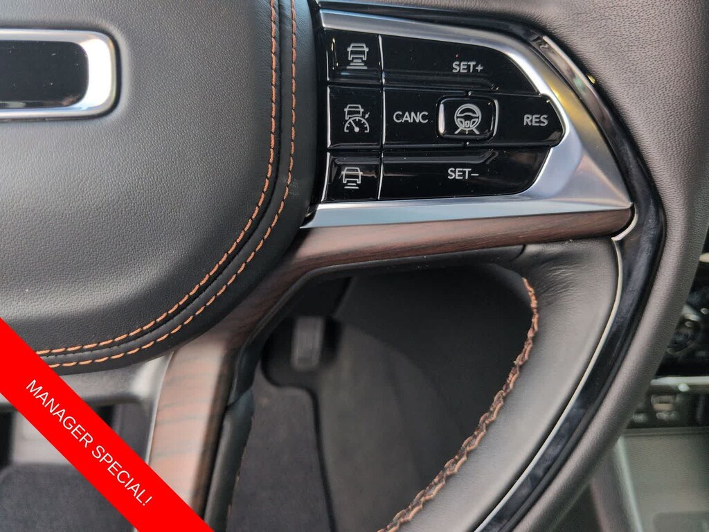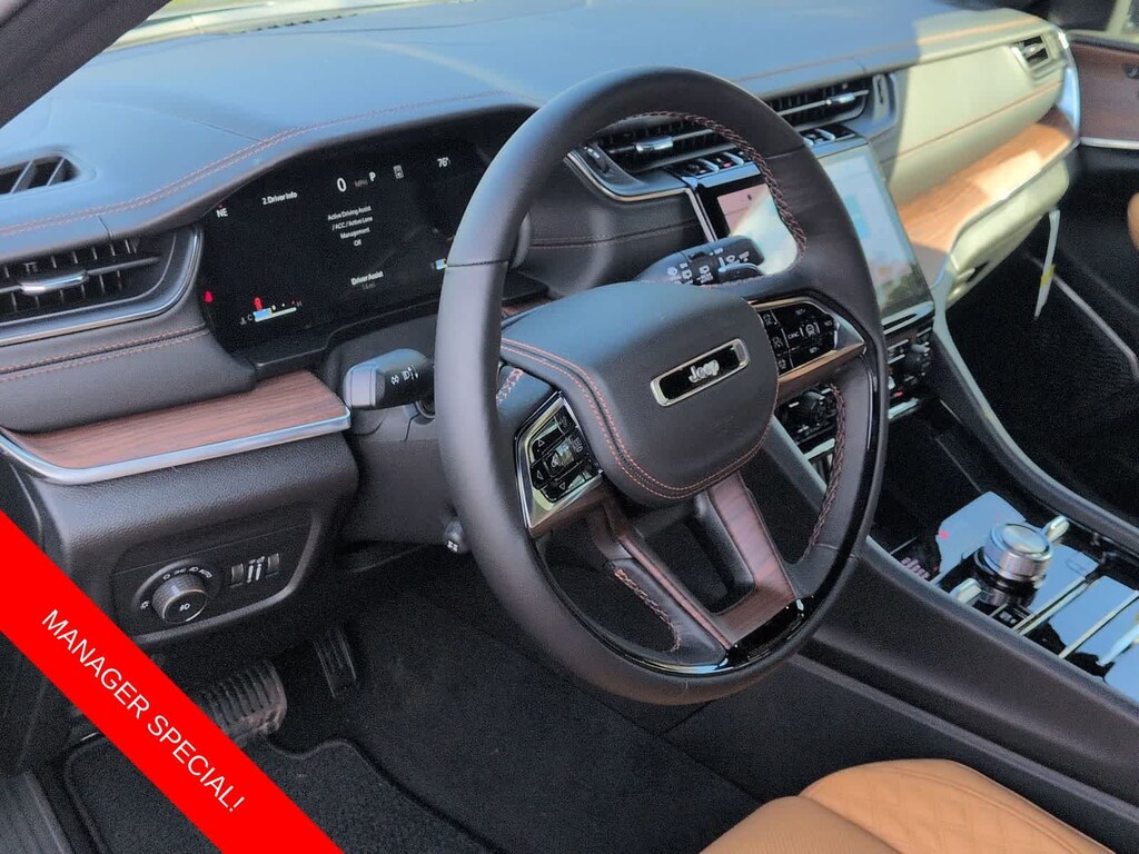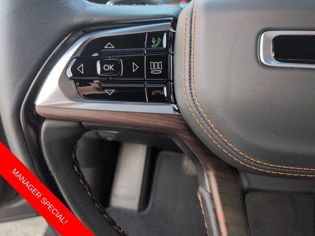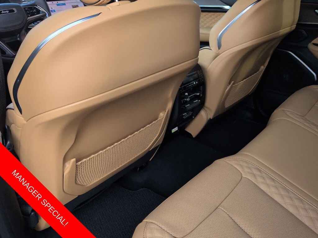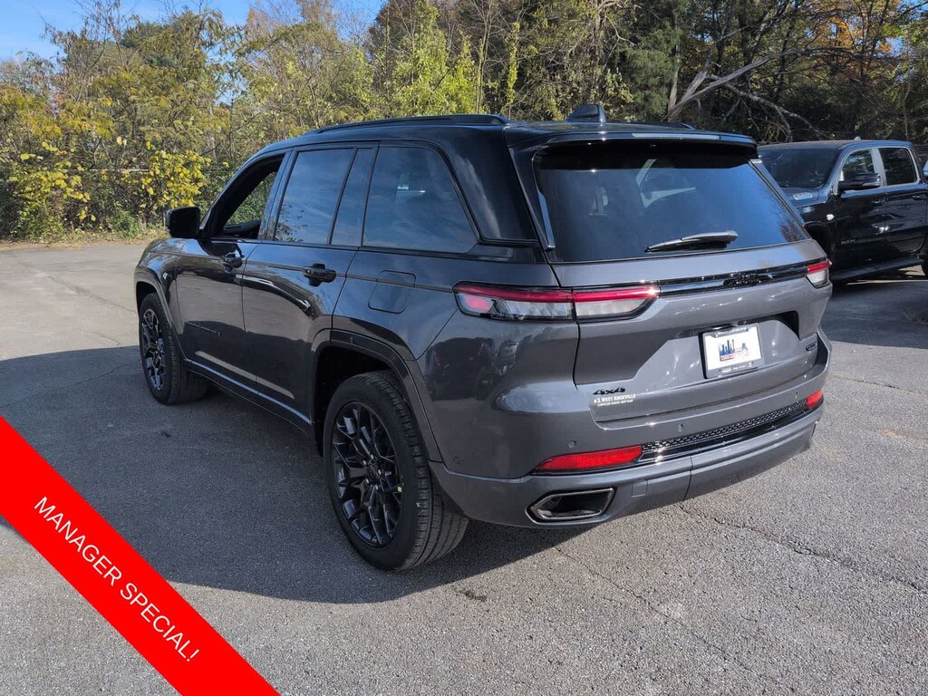 Grand Cherokee Summit is nicely equipped with Luxury Tech Group V (2nd-Row Manual Window Shades and Wireless Charging Pad), Obsidian Package (Gloss Black Exterior Accents, Neutral Gray Exterior Accents, Painted Door Cladding, and Wheels: 21 x 9 Black Painted Aluminum), Quick Order Package 23S, 4WD, 10 Speakers, 4-Wheel Disc Brakes, ABS brakes, Active Noise Control System, Adaptive suspension, Air Conditioning, Alloy wheels, AM/FM radio: SiriusXM with 360L, Anti-whiplash front head restraints, Audio memory, Auto High-beam Headlights, Auto-dimming door mirrors, Auto-dimming Rear-View mirror, Auto-leveling suspension, Automatic temperature control, Auxiliary Battery, Brake assist, Bumpers: body-color, Compass, Delay-off headlights, Driver door bin, Driver vanity mirror, Dual front impact airbags, Dual front side impact airbags, Electronic Stability Control, Emergency communication system, Four wheel independent suspension, Front anti-roll bar, Front Bucket Seats, Front Center Armrest w/Storage, Front dual zone A/C, Front fog lights, Front reading lights, Fully automatic headlights, Garage door transmitter, Genuine wood dashboard insert, Genuine wood door panel insert, Heated door mirrors, Heated front seats, Heated rear seats, Heated steering wheel, Illuminated entry, Knee airbag, Leather steering wheel, Low tire pressure warning, Memory seat, Model Year Tracking, Nappa Leather Seats, Navigation System, Normal Duty Suspension, Occupant sensing airbag, Outside temperature display, Overhead airbag, Overhead console, Panic alarm, Passenger door bin, Passenger vanity mirror, Power door mirrors, Power driver seat, Power Liftgate, Power moonroof, Power passenger seat, Power steering, Power windows, Radio data system, Radio: Uconnect 5 Nav with 10.1 Display, Rain sensing wipers, Rear air conditioning, Rear anti-roll bar, Rear dual zone A/C, Rear reading lights, Rear seat center armrest, Rear window defroster, Rear window wiper, Remote keyless entry, Security system, Speed control, Speed-Sensitive Wipers, Split folding rear seat, Spoiler, Steering wheel memory, Steering wheel mounted audio controls, Tachometer, Telescoping steering wheel, Tilt steering wheel, Traction control, Trip computer, Turn signal indicator mirrors, Variably intermittent wipers, Ventilated front seats, Voltmeter, and Wheels: 20 x 8.5 Fully Painted Aluminum Silver.