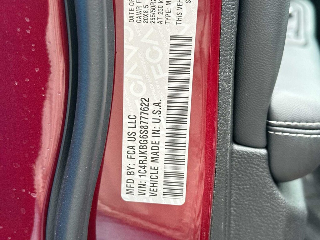 BLACK APPEARANCE PACKAGE Tires: 265/50R20 Performance A/S, Wheels: 20 x 8.5 Gloss Black Painted Aluminum, Gloss Black Exterior Accents, DUAL PANE PANORAMIC SUNROOF Interior Rear Facing Camera, TRANSMISSION: 8-SPEED AUTOMATIC (850RE) (STD), ENGINE: 3.6L V6 24V VVT UPG I W/ESS (STD). Jeep Limited with Velvet Red Pearlcoat exterior and Global Black interior features a V6 Cylinder Engine with 293 HP at 6400 RPM*.