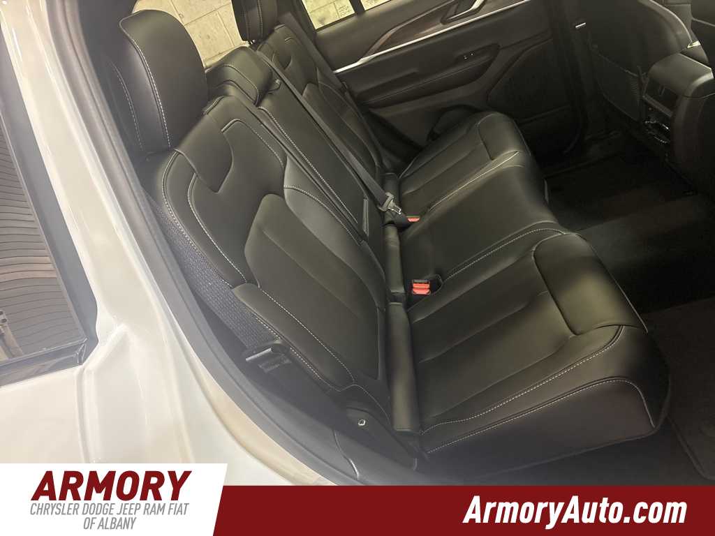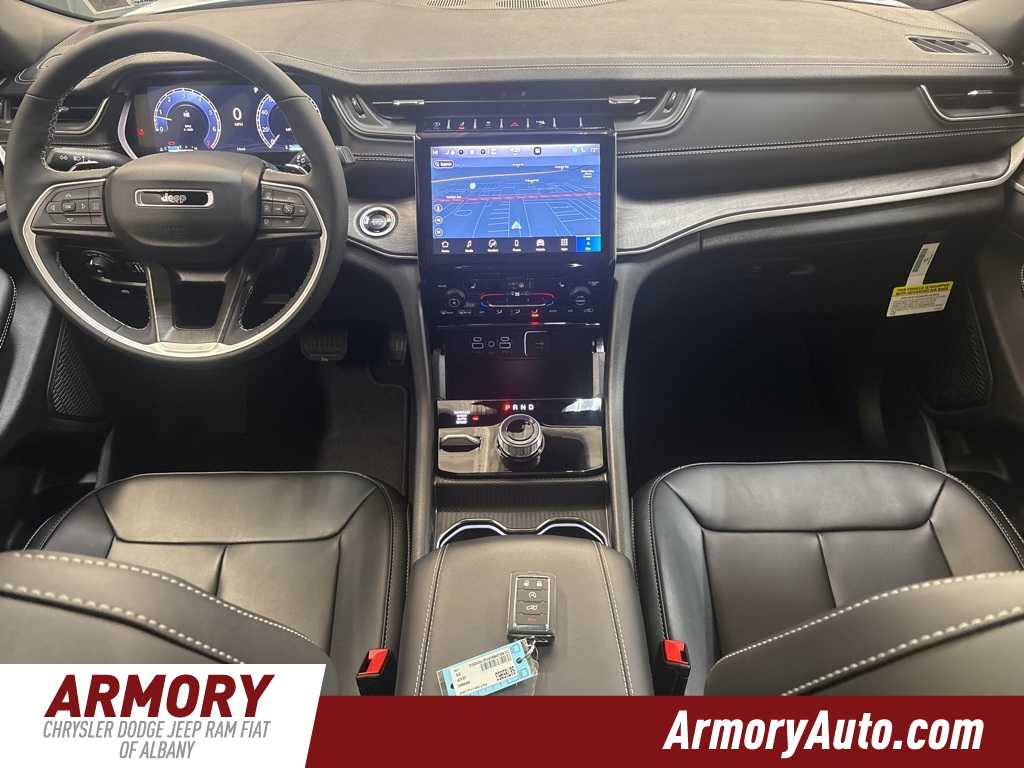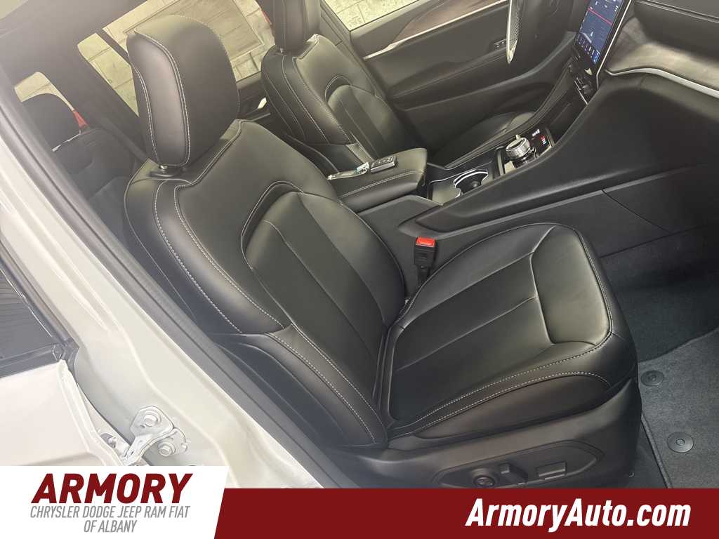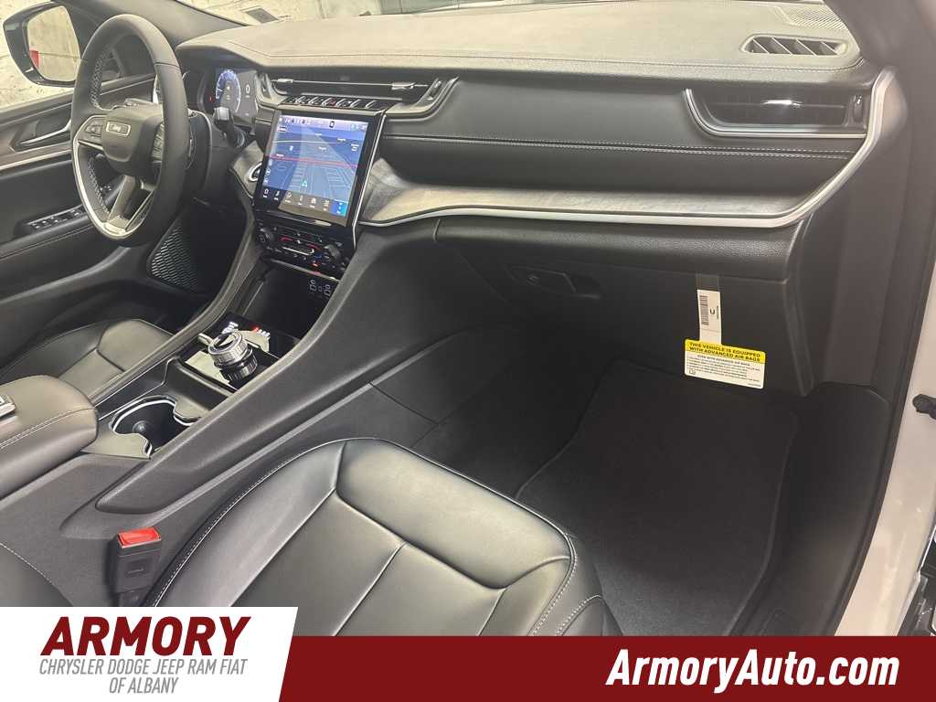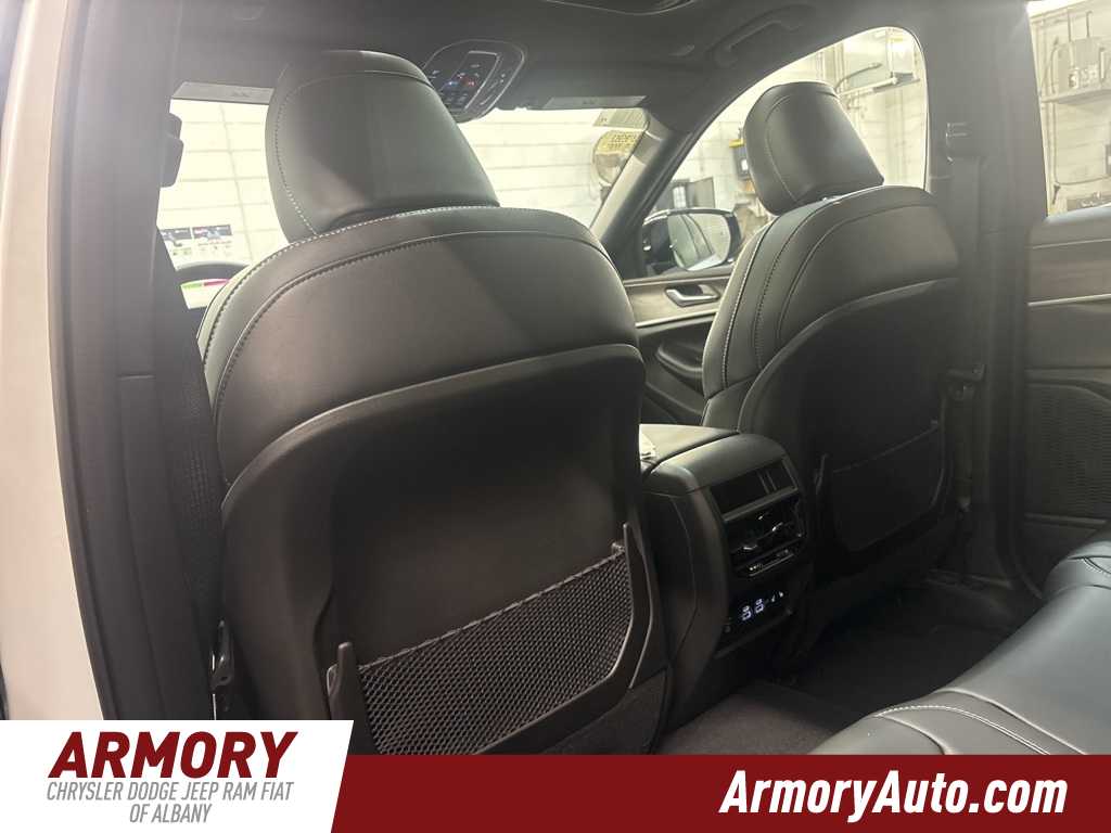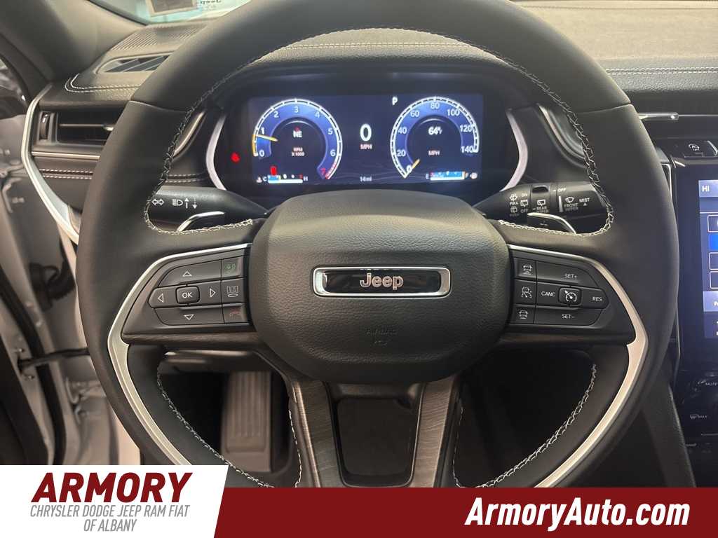 Grand Cherokee Limited is nicely equipped with Blackout Model (Black Painted Roof, Delete Limited Badge, Dual-Pane Panoramic Sunroof, Gloss Black Exterior Accents, and Wheels: 20 x 8.5 Black Painted Aluminum), Quick Order Package 22E, 4-Wheel Disc Brakes, 6 Speakers, ABS brakes, Active Noise Control System, Air Conditioning, Alloy wheels, AM/FM radio: SiriusXM with 360L, Anti-whiplash front head restraints, Audio memory, Auto High-beam Headlights, Automatic temperature control, Brake assist, Bumpers: body-color, Capri Leatherette Seats, Compass, Delay-off headlights, Driver door bin, Driver vanity mirror, Dual front impact airbags, Dual front side impact airbags, Electronic Stability Control, Emergency communication system, Four wheel independent suspension, Front anti-roll bar, Front Bucket Seats, Front Center Armrest w/Storage, Front dual zone A/C, Front fog lights, Front License Plate Bracket, Front reading lights, Fully automatic headlights, Garage door transmitter, Heated door mirrors, Heated front seats, Heated rear seats, Heated steering wheel, Illuminated entry, Knee airbag, Low tire pressure warning, Memory seat, Model Year Tracking, Navigation System, Normal Duty Suspension, Occupant sensing airbag, Outside temperature display, Overhead airbag, Overhead console, Panic alarm, ParkView Rear Back-Up Camera, Passenger door bin, Passenger vanity mirror, Power door mirrors, Power driver seat, Power Liftgate, Power passenger seat, Power steering, Power windows, Radio data system, Radio: Uconnect 5 Nav with 10.1 Display, Rear anti-roll bar, Rear reading lights, Rear window defroster, Rear window wiper, Remote keyless entry, Security system, Speed control, Speed-Sensitive Wipers, Split folding rear seat, Spoiler, Steering wheel mounted audio controls, Tachometer, Telescoping steering wheel, Tilt steering wheel, Traction control, Trip computer, Turn signal indicator mirrors, Variably intermittent wipers, Voltmeter, and Wheels: 18 x 8 Polished/Painted Aluminum.