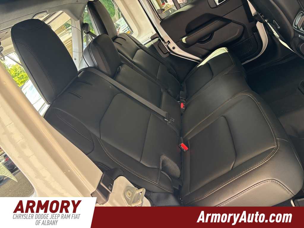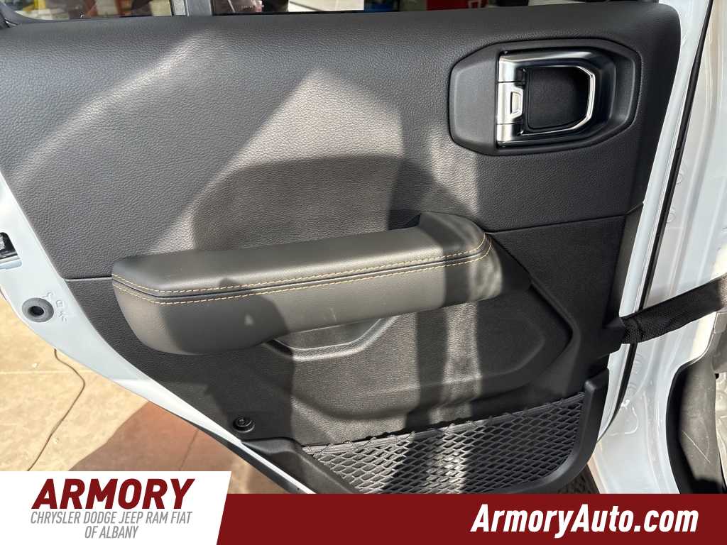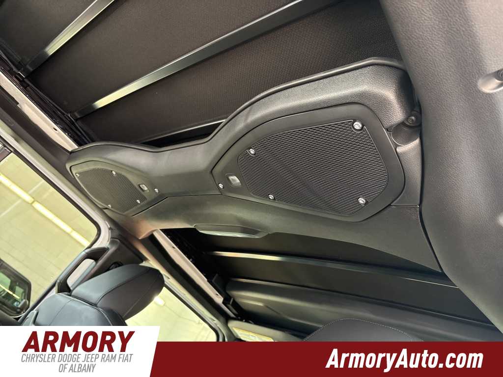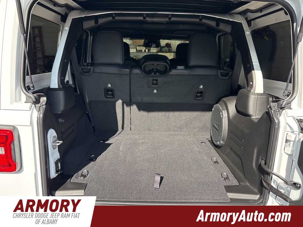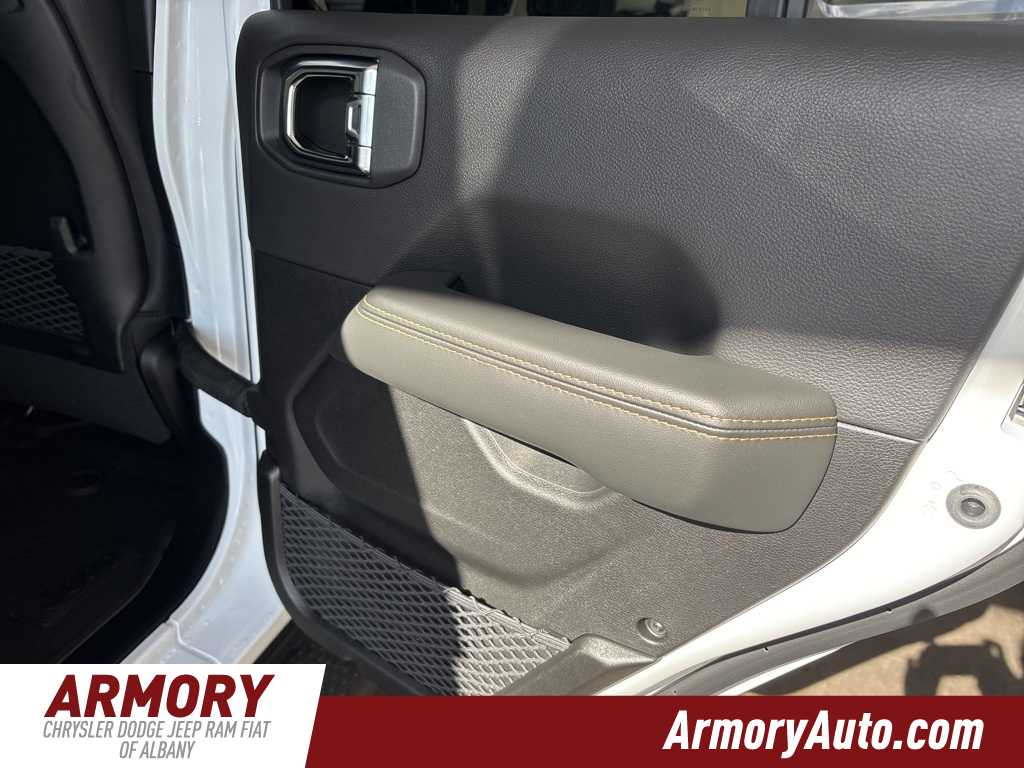 Wrangler Sahara is nicely equipped with Quick Order Package 22G Sahara, Sahara Popular Equipment Group (#1 Seat Foam Cushion, 12.3 Touchscreen Display, 4G LTE Wi-Fi Hot Spot, Alpine Premium Audio System, Apple CarPlay, Auto High Beam Headlamp Control, Auto-Dimming Rear-View Mirror, Blind Spot & Cross Path Detection, Connected Travel & Traffic Services, Connectivity - US/Canada, Disassociated Touchscreen Display, For More Info, Call 800-643-2112, Google Android Auto, GPS Navigation, Hard Seat Back, HD Radio, Integrated Center Stack Radio, Integrated Off-Road Camera, Integrated Voice Command w/Bluetooth, Leather Wrapped Park Brake Handle, Leather Wrapped Shift Knob, McKinley Trimmed Seats, ParkSense Rear Park Assist System, Power 4-Way Driver Lumbar Adjust, Power 4-Way Passenger Lumbar Adjust, Power Adjust 8-Way Driver Seat, Power Adjust 8-Way Front Passenger Seat, Radio: Uconnect 5 Nav w/12.3 Display, Side Steps, SiriusXM Radio Service, SiriusXM w/360L, and Universal Garage Door Opener), 110 MPH Vehicle Max Speed Calibration, 3.45 Overall Top Gear Ratio, 4-Wheel Disc Brakes, 8 Speakers, ABS brakes, Air Conditioning, Alloy wheels, AM/FM radio: SiriusXM, Apple CarPlay/Android Auto, Automatic temperature control, Aux Battery, Brake assist, Cloth Low-Back Bucket Seats, Compass, Delay-off headlights, Driver door bin, Driver vanity mirror, Dual front impact airbags, Dual front side impact airbags, Electronic Stability Control, Emergency communication system: Jeep Connect, Front anti-roll bar, Front Bucket Seats, Front Center Armrest w/Storage, Front dual zone A/C, Front fog lights, Front License Plate Bracket (DISC), Front reading lights, Fully automatic headlights, Heated door mirrors, Heated front seats, Heated steering wheel, Heavy Duty Suspension w/Gas Shocks, Illuminated entry, Integrated roll-over protection, Jeep Trail Rated Kit, Low tire pressure warning, MOPAR All-Weather Floor Mats, Non-Lock Fuel Cap w/o Discriminator, Occupant sensing airbag, Outside temperature display, Overhead airbag, Panic alarm, ParkView Rear Back-Up Camera, Passenger door bin, Passenger vanity mirror, Power door mirrors, Power steering, Power Top Quarter Window Storage Bag, Power windows, Radio data system, Radio: Uconnect 5 w/12.3 Display, Rear anti-roll bar, Rear reading lights, Rear Window Defroster, Rear Window Wiper/Washer, Remote keyless entry, Removable Rear Quarter Windows, Security system, Sky 1-Touch Power Top, Speed control, Split folding rear seat, Steering wheel mounted audio controls, Stop-Start Dual Battery System, Tachometer, Telescoping steering wheel, Tilt steering wheel, Traction control, Trip computer, Variably intermittent wipers, Voltmeter, and Wheels: 18 x 7.5 Machine/Painted Gray.