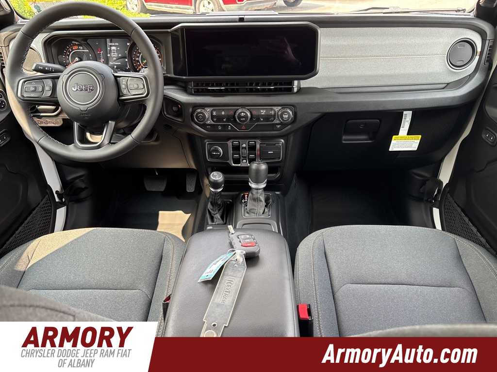 Wrangler Sport S is nicely equipped with Convenience Group (2-Door Passive Entry, Front Door Locks, Air Conditioning w/Auto Temperature Control, Air Filtering, Cluster 7.0 TFT Color Display, Emergency/Assistance Call, Heated Front Seats, Heated Steering Wheel, Remote Start System, and Universal Garage Door Opener), Quick Order Package 24S Sport S (Advanced Brake Assist, Automatic Headlamps, Corning Gorilla Glass, Deep Tint Sunscreen Windows, Enhanced Adaptive Cruise Control, Full Speed Forward Collision Warning Plus, Power Heated Mirrors, Premium Wrapped Steering Wheel, Security Alarm, Sun Visors w/Illuminated Vanity Mirrors, and Wheels: 17 x 7.5 Gray), 110 MPH Vehicle Max Speed Calibration, 3.45 Overall Top Gear Ratio, 4-Wheel Disc Brakes, 8 Speakers, ABS brakes, Air Conditioning, AM/FM radio: SiriusXM, Apple CarPlay/Android Auto, Aux Battery, Black 3-Piece Hard Top, Brake assist, Cloth Low-Back Bucket Seats, Compass, Delay-off headlights, Driver door bin, Driver vanity mirror, Dual front impact airbags, Dual front side impact airbags, Electronic Stability Control, Freedom Panel Storage Bag, Front anti-roll bar, Front Bucket Seats, Front Center Armrest w/Storage, Front fog lights, Front reading lights, Illuminated entry, Integrated roll-over protection, Jeep Trail Rated Kit, Low tire pressure warning, MOPAR All-Weather Floor Mats, Mopar Black Tubular Side Steps, Non-Lock Fuel Cap w/o Discriminator, Normal Duty Suspension, Occupant sensing airbag, Outside temperature display, Overhead airbag, Panic alarm, ParkView Rear Back-Up Camera, Passenger door bin, Passenger vanity mirror, Power steering, Power windows, Radio data system, Radio: Uconnect 5 w/12.3 Display, Rear anti-roll bar, Rear reading lights, Rear Window Defroster, Rear Window Wiper/Washer, Remote keyless entry, Speed control, Split folding rear seat, Steering wheel mounted audio controls, Stop-Start Dual Battery System, Tachometer, Telescoping steering wheel, Tilt steering wheel, Traction control, Trip computer, Variably intermittent wipers, and Wheels: 17 x 7.5 Black Steel Styled. Price includes: $1500 - 2025 National Bonus Cash . Exp. 03/02/2026 $2000 - 2025 National Select Inventory Bonus Cash. Exp. 03/02/2026