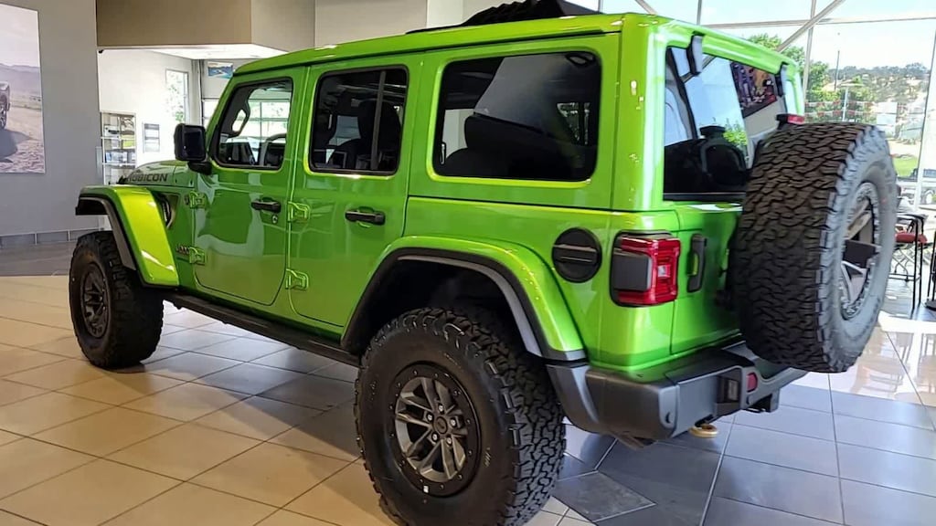 SKY 1-TOUCH POWER TOP Rear Window Defroster, Rear Window Wiper/Washer, Removable Rear Quarter Windows, Power Top Quarter Window Storage Bag, ENGINE: 6.4L V8 SRT HEMI MDS (STD), TRANSMISSION: 8-SPEED AUTOMATIC (8HP75) (STD). Jeep Rubicon 392 Final Edition with Mojito Clearcoat exterior and Black interior features a 8 Cylinder Engine with 470 HP at 6000 RPM*.