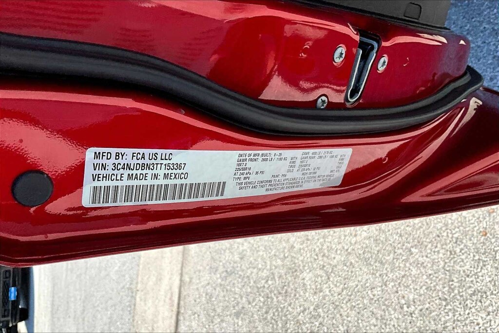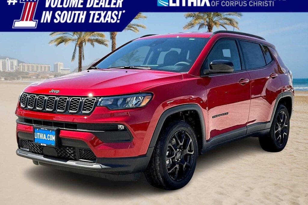 Red Hot Pearlcoat 2026 Jeep Compass Latitude 4WD 8-Speed Automatic 2.0L I4 DOHC FRESH OIL CHANGE, 4WD, 10.1 Touchscreen Display, 17 x 7 Aluminum Wheels, 2nd Row USB Type A/C Charge Only, 3.73 Final Drive Ratio, 4-Wheel Disc Brakes, 4G LTE Wi-Fi Hot Spot, 6 Speakers, ABS brakes, Adaptive Cruise Control with Stop and Go, Air Conditioning, Air Conditioning ATC with Dual Zone Control, All-Season Floor Mats, Altitude Special Edition, AM/FM radio: SiriusXM, Auto High-beam Headlights, Auto-Dimming Rear-View Mirror, Automatic temperature control, Black Day Light Opening Moldings, Bluetooth Handsfree Phone and Audio, Brake assist, Bumpers: body-color, Compass, Convenience Group, Delay-off headlights, Driver Assistance Group, Driver door bin, Driver vanity mirror, Dual front impact airbags, Dual front side impact airbags, Electronic Stability Control, Emergency communication system: SiriusXM Guardian, Foot Activated Open n Go Liftgate, Four wheel independent suspension, Front anti-roll bar, Front Bucket Seats, Front Center Armrest w/Storage, Front fog lights, Front License Plate Bracket, Front reading lights, Fully automatic headlights, Global Telematics Box Module, Gloss Black Surround/Neutral Gray Rings, Heated door mirrors, Heated front seats, Heated steering wheel, Humidity Sensor, Illuminated entry, Knee airbag, Leather Shift Knob, Leather steering wheel, Low tire pressure warning, Manufacture Statement of Origin, Neutral Gray Exterior Badging, Occupant sensing airbag, Outside temperature display, Overhead airbag, Overhead console, Panic alarm, ParkView Rear Back-Up Camera, Passenger door bin, Passenger vanity mirror, Piano Black Interior Accents, Power 2-Way Driver Lumbar Adjust, Power Adjust 8-Way Driver Seat, Power door mirrors, Power Liftgate, Power steering, Power windows, Premium audio system: UConnect 5, Premium Cloth/Vinyl Bucket Seats, Premium LED Fog Lamps, Quick Order Package 29K, Radio: Uconnect 5 with 8.4 Display, Rain Sensitive/Intermittent Wipers, Rear anti-roll bar, Rear seat center armrest, Rear window defroster, Rear window wiper, Remote keyless entry, Security system, SiriusXM Satellite Radio, Sliding Sun Visors with Illuminated Mirrors, Speed control, Split folding rear seat, Spoiler, Steering wheel mounted audio controls, Tachometer, Telescoping steering wheel, Tilt steering wheel, Traction control, Trip computer, Variably intermittent wipers, Wheels: 18 x 7 Gloss Black Painted Aluminum, Windshield Wiper De-Icer, Wireless Charging Pad, 4WD.
