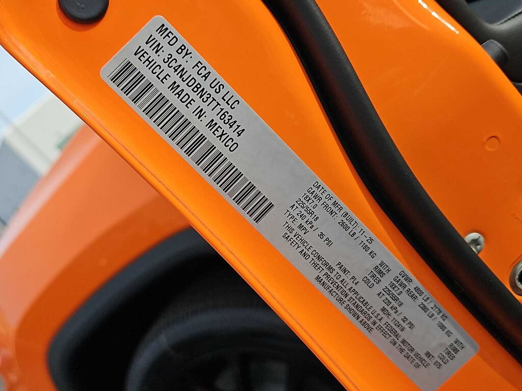 This Jeep comes with:Quick Order Package 29N Altitude (10.1 Touchscreen Display, Altitude Special Edition, Black Day Light Opening Moldings, Gloss Black Surround/Neutral Gray Rings, Neutral Gray Exterior Badging, Piano Black Interior Accents, Sliding Sun Visors with Illuminated Mirrors, and Wheels: 18 x 7 Gloss Black Painted Aluminum), 4WD, 17 x 7 Aluminum Wheels, 3.73 Final Drive Ratio, 4-Wheel Disc Brakes, 4G LTE Wi-Fi Hot Spot, 6 Speakers, ABS brakes, Air Conditioning, AM/FM radio: SiriusXM, Auto High-beam Headlights, Automatic temperature control, Bluetooth Handsfree Phone and Audio, Brake assist, Bumpers: body-color, Compass, Delay-off headlights, Driver door bin, Driver vanity mirror, Dual front impact airbags, Dual front side impact airbags, Electronic Stability Control, Emergency communication system: SiriusXM Guardian, Four wheel independent suspension, Front anti-roll bar, Front Bucket Seats, Front Center Armrest w/Storage, Front fog lights, Front License Plate Bracket, Front reading lights, Fully automatic headlights, Global Telematics Box Module, Heated door mirrors, Heated front seats, Heated steering wheel, Illuminated entry, Knee airbag, Leather Shift Knob, Leather steering wheel, Low tire pressure warning, Manufacture Statement of Origin, Occupant sensing airbag, Outside temperature display, Overhead airbag, Overhead console, Panic alarm, ParkView Rear Back-Up Camera, Passenger door bin, Passenger vanity mirror, Power door mirrors, Power steering, Power windows, Premium audio system: UConnect 5, Premium Cloth/Vinyl Bucket Seats, Radio: Uconnect 5 with 8.4 Display, Rear anti-roll bar, Rear seat center armrest, Rear window defroster, Rear window wiper, Remote keyless entry, Security system, SiriusXM Satellite Radio, Speed control, Split folding rear seat, Spoiler, Steering wheel mounted audio controls, Tachometer, Telescoping steering wheel, Tilt steering wheel, Traction control, Trip computer, and Variably intermittent wipers. Prices do not include Protection Package + includes Vehicle Tint at $599, Door Edge Guards at $399, Wheel Locks at $199, PermaPlate at $700, LoJack at $1,199 and Etch at $899. Price does not include $699 Dealer Documentation Fee, taxes, and license fee. Price includes: $1000 - 2026 National Retail Bonus Cash . Exp. 03/02/2026