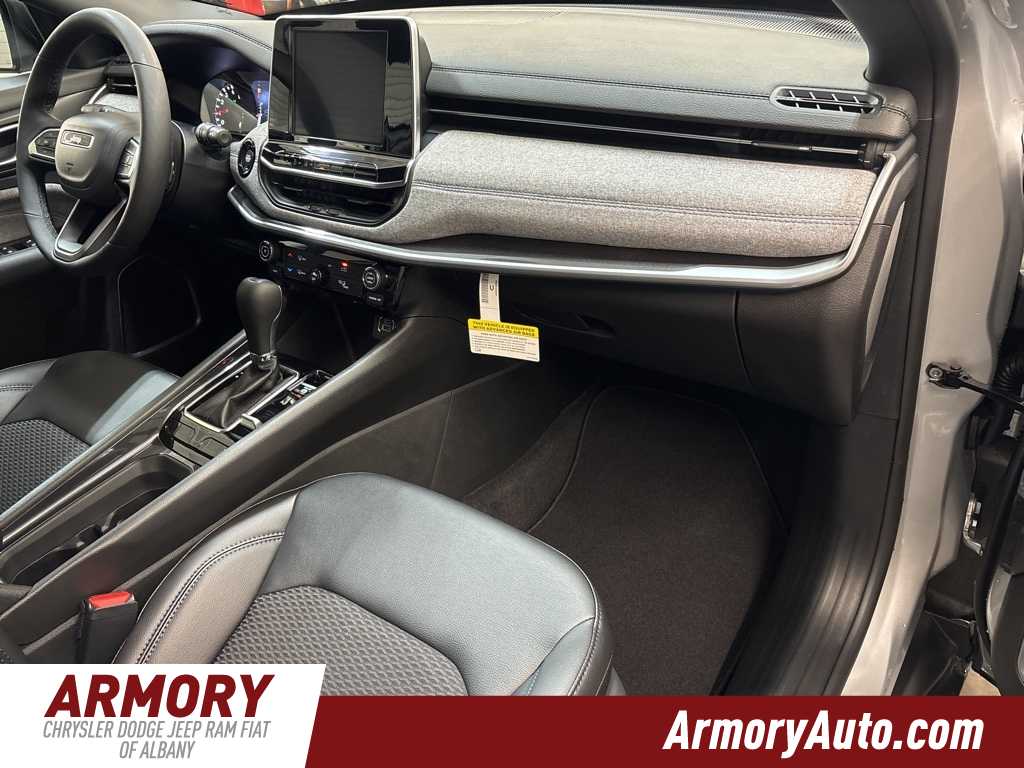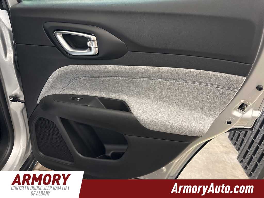Compass Latitude is nicely equipped with Quick Order Package 29J Latitude, 17 x 7 Aluminum Wheels, 3.73 Final Drive Ratio, 4-Wheel Disc Brakes, 4G LTE Wi-Fi Hot Spot, 6 Speakers, ABS brakes, Air Conditioning, AM/FM radio: SiriusXM, Auto High-beam Headlights, Automatic temperature control, Bluetooth Handsfree Phone and Audio, Brake assist, Bumpers: body-color, Compass, Delay-off headlights, Driver door bin, Driver vanity mirror, Dual front impact airbags, Dual front side impact airbags, Electronic Stability Control, Emergency communication system: SiriusXM Guardian, Four wheel independent suspension, Front anti-roll bar, Front Bucket Seats, Front Center Armrest w/Storage, Front fog lights, Front License Plate Bracket, Front reading lights, Fully automatic headlights, Global Telematics Box Module, Heated door mirrors, Heated front seats, Heated steering wheel, Illuminated entry, Knee airbag, Leather Shift Knob, Leather steering wheel, Low tire pressure warning, MyFlexCare Service Plan, Occupant sensing airbag, Outside temperature display, Overhead airbag, Overhead console, Panic alarm, ParkView Rear Back-Up Camera, Passenger door bin, Passenger vanity mirror, Power door mirrors, Power steering, Power windows, Premium audio system: UConnect 5, Premium Cloth/Vinyl Bucket Seats, Radio: Uconnect 5 with 8.4 Display, Rear anti-roll bar, Rear seat center armrest, Rear window defroster, Rear window wiper, Remote keyless entry, Security system, SiriusXM Satellite Radio, Speed control, Split folding rear seat, Spoiler, Steering wheel mounted audio controls, Tachometer, Telescoping steering wheel, Tilt steering wheel, Traction control, Trip computer, and Variably intermittent wipers.