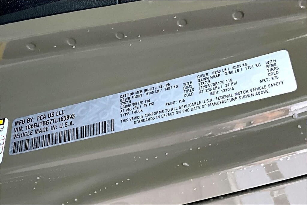 QUICK ORDER PACKAGE 24Y RUBICON X 3.6L V6 24V VVT UPG I Engine w/ESS, 8-Speed Automatic 850RE Transmission, Steel Front Bumper, Integrated Off-Road Camera, Blind Spot & Cross Path Detection, Rear View Auto Dim Mirror, Freedom Panel Storage Bag, Rear Window Defroster, Rear Sliding Window, Heated Front Seats, Bluetooth® Wireless Speaker, Integrated Voice Command w/Bluetooth®, Auto High Beam Headlamp Control, Universal Garage Door Opener, Heated Steering Wheel, ParkSense Rear Park Assist System, Rubicon Hood Top Decal, MOPAR SPRAY IN BEDLINER, 8-SPEED AUTOMATIC 850RE TRANSMISSION (STD), 3.6L V6 24V VVT UPG I ENGINE W/ESS (STD). Jeep Rubicon X with 41 exterior and Black interior features a V6 Cylinder Engine with 285 HP at 6400 RPM*.