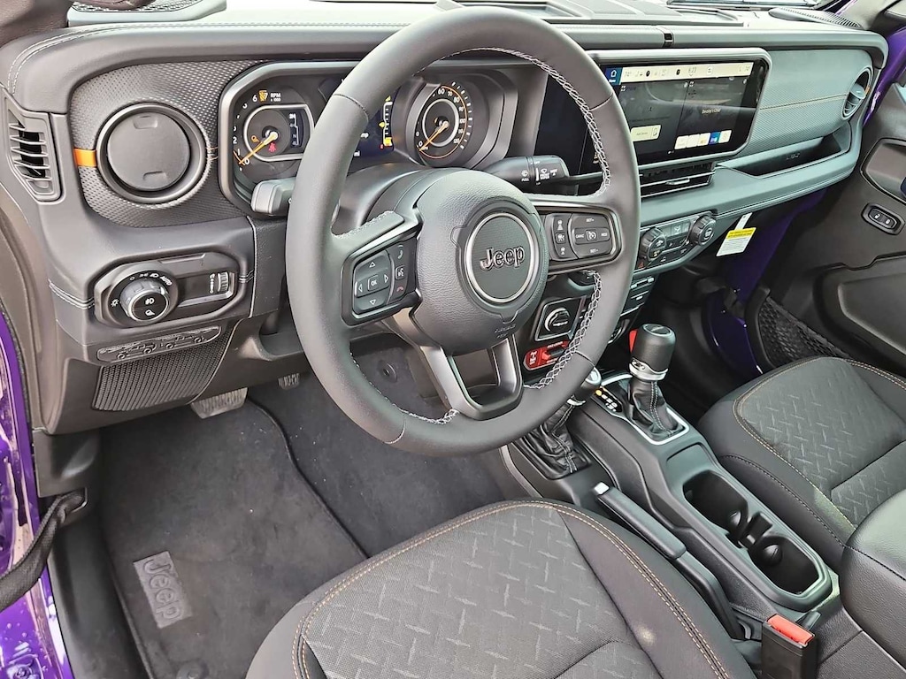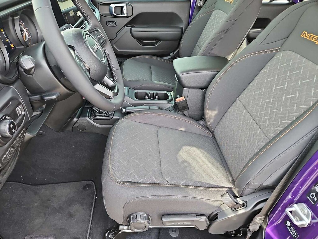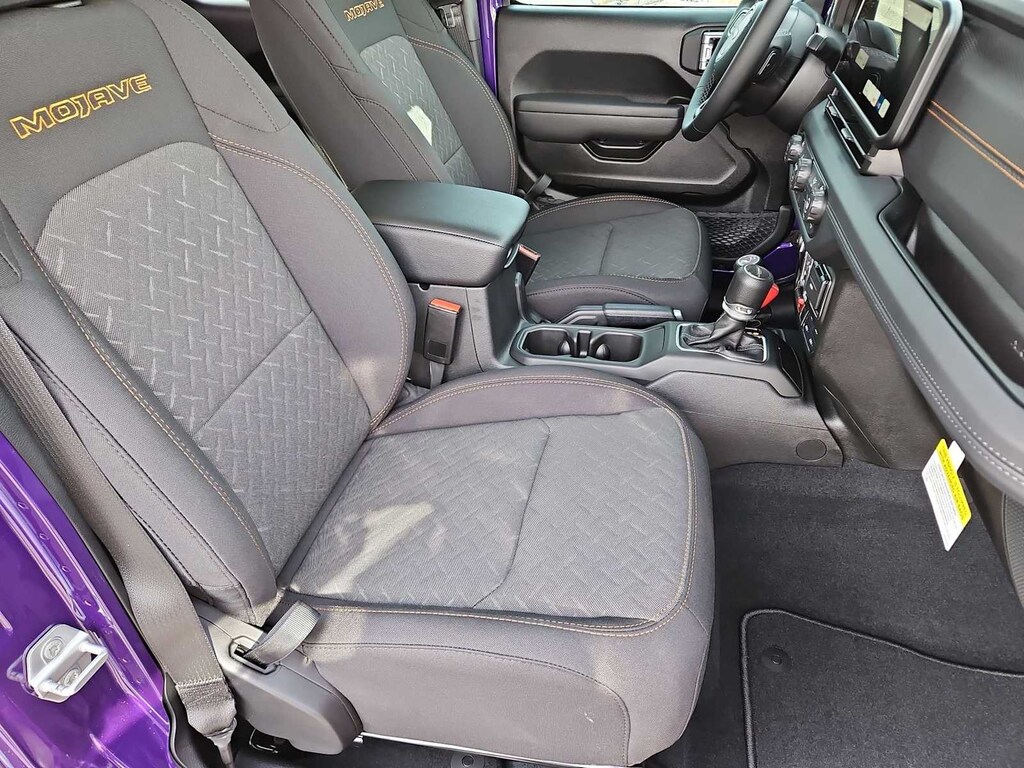 This Jeep comes with:Convenience Group (Heated Front Seats, Heated Steering Wheel, Remote Start System, and Universal Garage Door Opener), Quick Order Package 24D Mojave, 110 Mph Vehicle Max Speed Calibration, 12.3 Touchscreen Display, 4-Wheel Disc Brakes, 4.10 Rear Axle Ratio, 4G LTE Wi-Fi Hot Spot, 8 Speakers, ABS brakes, Air Conditioning, Alexa Built-in, Alloy wheels, AM/FM radio: SiriusXM with 360L, Apple CarPlay, Apple CarPlay/Android Auto, Automatic temperature control, Body Color 3-Piece Hard Top, Body Color Rubicon Highline Flare, Brake assist, Compass, Connectivity - US/Canada, Delay-off headlights, Driver door bin, Driver vanity mirror, Dual front impact airbags, Dual front side impact airbags, Electronic Stability Control, Emergency communication system: Jeep Connect, For Details, Visit DriveUconnect.com, Freedom Panel Storage Bag, Front anti-roll bar, Front Bucket Seats, Front Center Armrest w/Storage, Front dual zone A/C, Front fog lights, Front License Plate Bracket, Front reading lights, Fully automatic headlights, Google Android Auto, Heated door mirrors, Heavy Duty Suspension with Gas Shocks, Illuminated entry, Integrated Center Stack Radio, Integrated roll-over protection, Low tire pressure warning, Manufacturers Statement of Origin, Occupant sensing airbag, Outside temperature display, Overhead airbag, Panic alarm, Passenger door bin, Passenger vanity mirror, Power door mirrors, Power steering, Power windows, Premium Cloth Seats with Sport Bolsters, Radio data system, Radio: Uconnect 5 with 12.3 Display, Rear anti-roll bar, Rear reading lights, Rear Sliding Window, Rear Window Defroster, Remote keyless entry, Security system, SiriusXM Radio Service, SiriusXM with 360L, Speed control, Split folding rear seat, Steering wheel mounted audio controls, Tachometer, Telescoping steering wheel, Tilt steering wheel, Traction control, Trip computer, USB Host Flip, Variably intermittent wipers, Voltmeter, and Wheels: 17 x 7.5 Dark Gray PainteD. Prices do not include Protection Package + includes Vehicle Tint at $599, Door Edge Guards at $399, Wheel Locks at $199, PermaPlate at $700, LoJack at $1,199 and Etch at $899. Price does not include $699 Dealer Documentation Fee, taxes, and license fee.