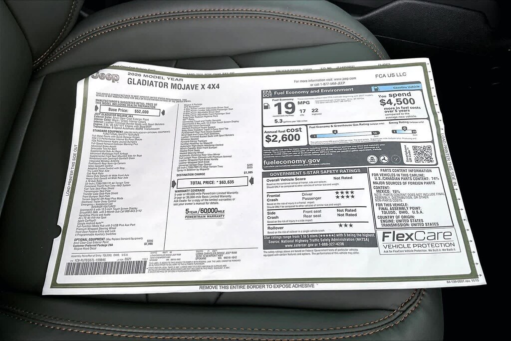- Powertrain warranty: 60 months/60,000miles