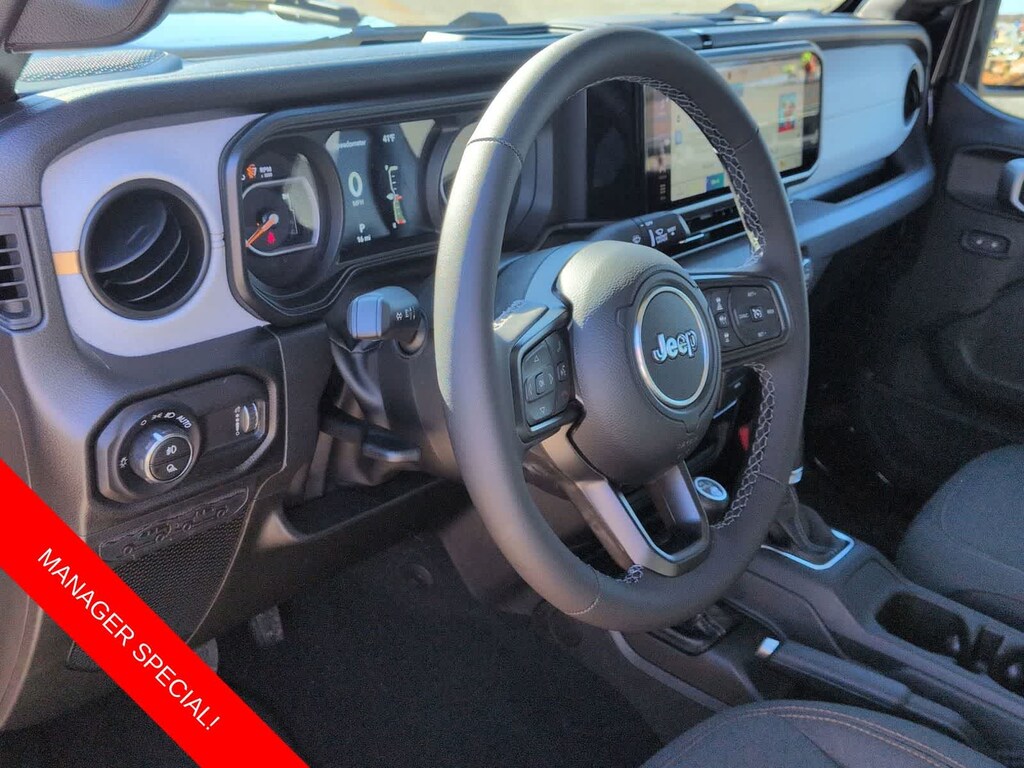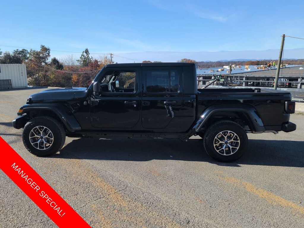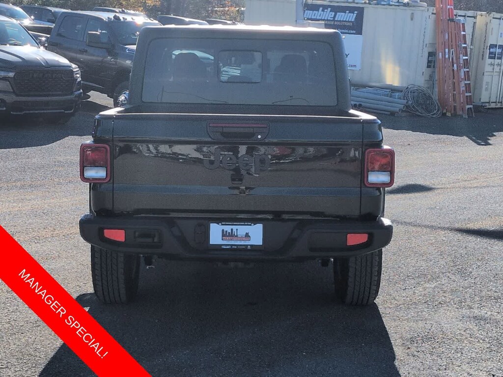 Gladiator Sport S is nicely equipped with Convenience Group (Air Conditioning with Auto Temp Control, Cluster 7.0 TFT Color Display, Corning Gorilla Glass, Daytime Running Lamp System, Emergency/Assistance Call, Front Door Locks 2-Door Passive Entry, Heated Front Seats, Heated Steering Wheel, Remote Start System, and Universal Garage Door Opener), Dark Sky Appearance Package (2-Piece Body Color Fender Flares, Mold in Color Bumper with Gloss Black, and Performance Hood), Quick Order Package 24S Sport S (Advanced Brake Assist, Automatic Headlamps, Deep Tint Sunscreen Windows, Full Speed Forward Collision Warning Plus, Normal Duty Plus Suspension, Power Heated Mirrors, Premium Wrapped Steering Wheel, Security Alarm, Sun Visors with Illuminated Vanity Mirrors, and Wheels: 17 x 7.5 Gray), 110 Mph Vehicle Max Speed Calibration, 12.3 Touchscreen Display, 3.73 Rear Axle Ratio, 4-Wheel Disc Brakes, 4G LTE Wi-Fi Hot Spot, 8 Speakers, ABS brakes, Air Conditioning, Alexa Built-in, AM/FM radio: SiriusXM with 360L, Apple CarPlay, Apple CarPlay/Android Auto, Black 3-Piece Hard Top, Brake assist, Compass, Connectivity - US/Canada, Delay-off headlights, Driver door bin, Driver vanity mirror, Dual front impact airbags, Dual front side impact airbags, Electronic Stability Control, For Details, Visit DriveUconnect.com, Freedom Panel Storage Bag, Front anti-roll bar, Front Bucket Seats, Front Center Armrest w/Storage, Front fog lights, Front reading lights, Google Android Auto, Illuminated entry, Integrated Center Stack Radio, Integrated roll-over protection, Low tire pressure warning, MOPAR Spray in Bedliner, Normal Duty Suspension, Occupant sensing airbag, Outside temperature display, Overhead airbag, Panic alarm, ParkView Rear Back-Up Camera, Passenger door bin, Passenger vanity mirror, Power steering, Power windows, Radio data system, Radio: Uconnect 5 with 12.3 Display, Rear anti-roll bar, Rear reading lights, Rear Sliding Window, Rear Window Defroster, Remote keyless entry, SiriusXM Radio Service, SiriusXM with 360L, Speed control, Split folding rear seat, Steering wheel mounted audio controls, Tachometer, Telescoping steering wheel, Tilt steering wheel, Traction control, Trip computer, USB Host Flip, Variably intermittent wipers, Voltmeter, Wheels: 17 x 7.5 Black Steel Styled, and Wheels: 17 x 7.5 Machined with Black PocketS.