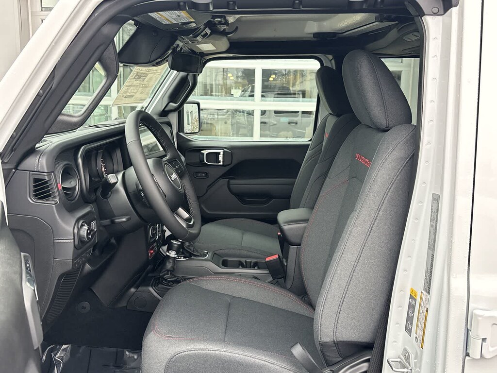 BLACK 3-PIECE HARD TOP Freedom Panel Storage Bag, Rear Window Defroster, Rear Sliding Window, 17 X 7.5 MACHINED WHEELS W/BLACK POCKETS, CONVENIENCE GROUP Heated Steering Wheel, Remote Start System, Universal Garage Door Opener, Heated Front Seats, 8-SPEED AUTOMATIC 850RE TRANSMISSION (STD), 3.6L V6 24V VVT UPG I ENGINE W/ESS (STD). Jeep Rubicon with Bright White Clearcoat exterior and Black interior features a V6 Cylinder Engine with 285 HP at 6400 RPM*.