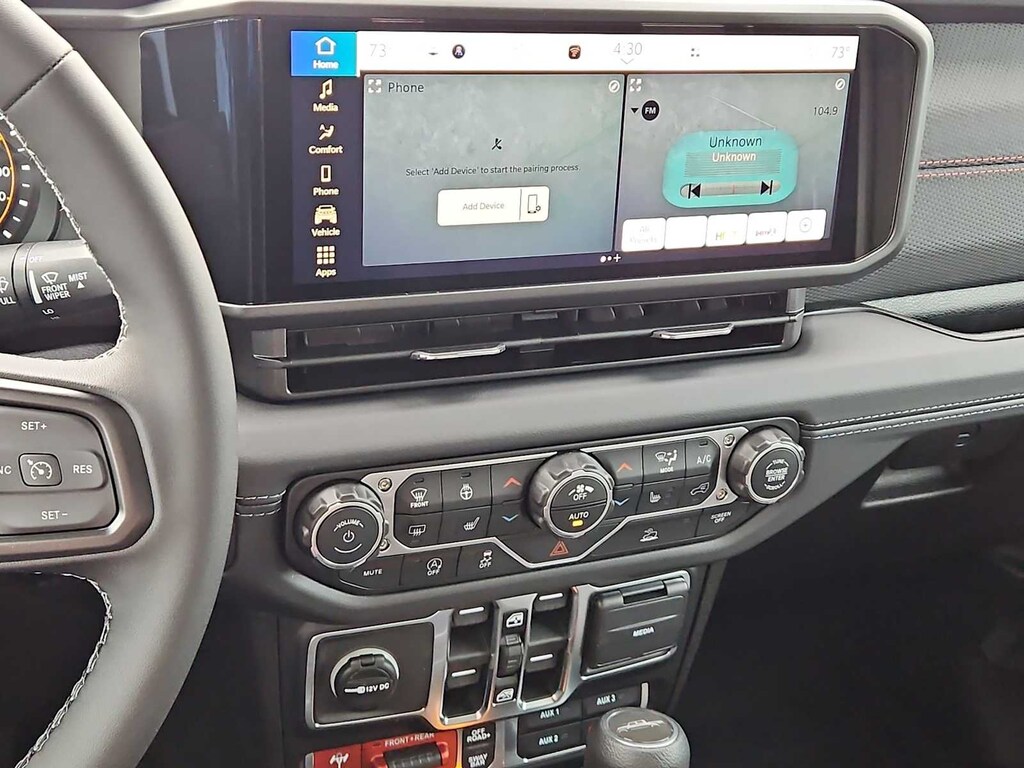 This Jeep comes with:Convenience Group (Heated Front Seats, Heated Steering Wheel, Remote Start System, and Universal Garage Door Opener), Quick Order Package 24R Rubicon, Steel Power Dome Hood Package (Power Dome Dual Vented Hood), 110 Mph Vehicle Max Speed Calibration, 12.3 Touchscreen Display, 4-Wheel Disc Brakes, 4.10 Rear Axle Ratio, 4G LTE Wi-Fi Hot Spot, 8 Speakers, ABS brakes, Air Conditioning, Alexa Built-in, Alloy wheels, AM/FM radio: SiriusXM with 360L, Apple CarPlay, Apple CarPlay/Android Auto, Automatic temperature control, Black 3-Piece Hard Top, Brake assist, Cloth Low-Back Bucket Seats, Compass, Connectivity - US/Canada, Delay-off headlights, Driver door bin, Driver vanity mirror, Dual front impact airbags, Dual front side impact airbags, Electronic Stability Control, Emergency communication system: Jeep Connect, Freedom Panel Storage Bag, Front anti-roll bar, Front Bucket Seats, Front Center Armrest w/Storage, Front dual zone A/C, Front fog lights, Front License Plate Bracket, Front reading lights, Fully automatic headlights, Google Android Auto, Heated door mirrors, Illuminated entry, Integrated roll-over protection, Low tire pressure warning, Manufacturers Statement of Origin, MOPAR All-Weather Slush Mats, MOPAR Spray in Bedliner, Occupant sensing airbag, Outside temperature display, Overhead airbag, Panic alarm, Passenger door bin, Passenger vanity mirror, Performance Suspension, Power door mirrors, Power steering, Power windows, Radio data system, Radio: Uconnect 5 with 12.3 Display, Rear anti-roll bar, Rear reading lights, Rear Sliding Window, Rear Window Defroster, Remote keyless entry, Security system, Speed control, Split folding rear seat, Steering wheel mounted audio controls, Tachometer, Telescoping steering wheel, Tilt steering wheel, Traction control, Trip computer, USB Host Flip, Variably intermittent wipers, Voltmeter, Wheels: 17 x 7.5 Machined with Black Pockets, and Wheels: 17 x 7.5 Machined/Painted Black. Prices do not include Protection Package + includes Vehicle Tint at $599, Door Edge Guards at $399, Wheel Locks at $199, PermaPlate at $700, LoJack at $1,199 and Etch at $899. Price does not include $699 Dealer Documentation Fee, taxes, and license fee.