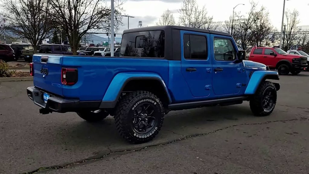 QUICK ORDER PACKAGE 24W WILLYS 3.6L V6 24V VVT UPG I Engine w/ESS, 8-Speed Automatic 850RE Transmission, LED Taillamps, Protection Sill Rails, 4-Wheel Drive Decal, Black Grille, Body Color Fender Flares (2-Piece), Front Heavy Duty Red Accent Shock Absorbers, Daytime Running Lamps LED Accents, Front LED Fog Lamps, LED Premium Reflector Headlamps, E-Locker Rear Axle, Corning Gorilla Glass, Trailer Hitch Zoom, Class IV Receiver Hitch, Security Alarm, Mold In Color Bumper w/Gloss Black, Advanced Brake Assist, Heavy Duty Engine Cooling, Automatic Headlamps, Air Conditioning w/Auto Temp Control, Deep Tint Sunscreen Windows, Off-Road Plus Mode, Willys Hood Decal, Full Speed Forward Collision Warning Plus, Rear Heavy Duty Red Accent Shock Absorbers, Front Door Locks 2-Door Passive Entry, Cluster, BLACK 3-PIECE HARD TOP Freedom Panel Storage Bag, Rear Window Defroster, Rear Sliding Window, CONVENIENCE GROUP Emergency/Assistance Call, Front Door Locks 2-Door Passive Entry, Remote Start System, Body Color Fender Flares (2-Piece), Cluster 7.0 TFT Color Display, Universal Garage Door Opener, Daytime Running Lamp System, Heated Front Seats, Air Conditioning w/Auto Temp Control, Heated Steering Wheel, Corning Gorilla Glass, ALPINE PREMIUM AUDIO SYSTEM, MOPAR SPRAY IN BEDLINER, 8-SPEED AUTOMATIC 850RE TRANSMISSION (STD), 3.6L V6 24V VVT UPG I ENGINE W/ESS (STD). Jeep Willys with Hydro Blue Pearlcoat exterior and Black interior features a V6 Cylinder Engine with 285 HP at 6400 RPM*.