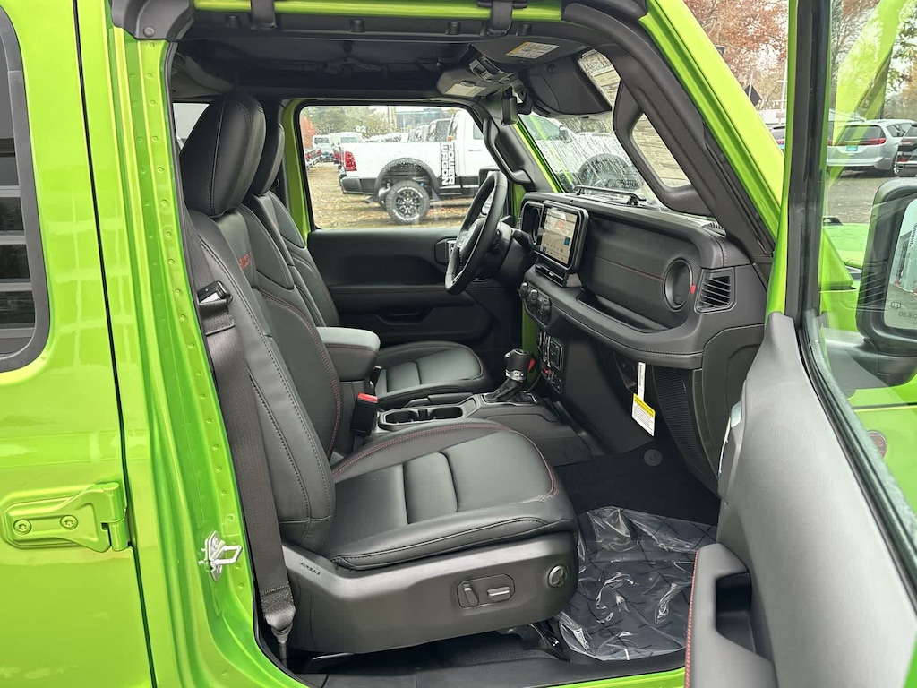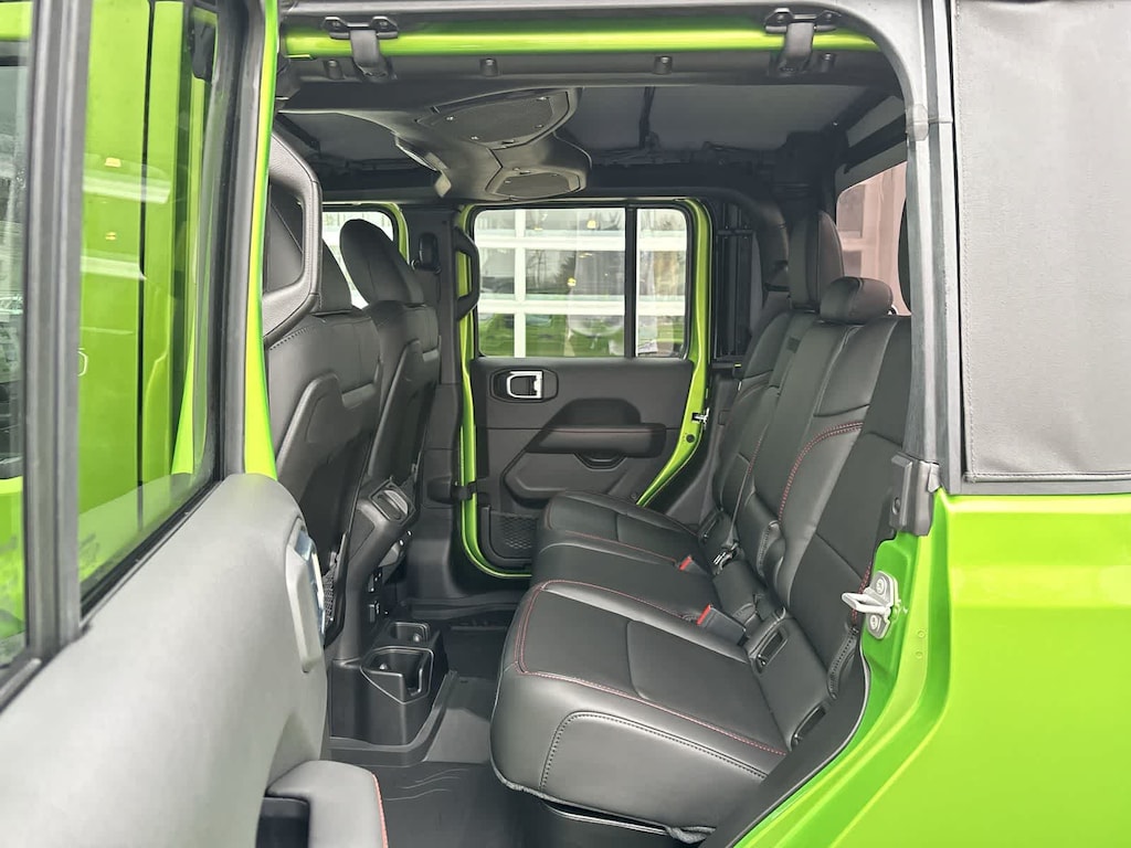 BLACK, POWER ADJUST NAPPA LEATHER SEATS Leather Wrapped Shift Knob, Premium Door Trim Panel, Power Adjust 8-Way Driver Seat, Power 4-Way Passenger Lumbar Adjust, Power Adjust 8-Way Front Passenger Seat, Full Length Floor Console Premium Armrest, Leather Wrapped Park Brake Handle, Power 4-Way Driver Lumbar Adjust, Rear Armrest w/Cupholder Seat, TECHNOLOGY GROUP Integrated Off-Road Camera, HD Radio, Connected Travel & Traffic Services, Rear View Auto Dim Mirror, Integrated Voice Command w/Bluetooth®, Uconnect 5 Nav w/12.3 Display, GPS Navigation, ALPINE PREMIUM AUDIO SYSTEM, 17 X 7.5 MACHINED WHEELS W/BLACK POCKETS, CONVENIENCE GROUP Heated Steering Wheel, Remote Start System, Universal Garage Door Opener, Heated Front Seats, 8-SPEED AUTOMATIC 850RE TRANSMISSION (STD), 3.6L V6 24V VVT UPG I ENGINE W/ESS (STD). Jeep Rubicon with Mojito exterior and Black interior features a V6 Cylinder Engine with 285 HP at 6400 RPM*.
