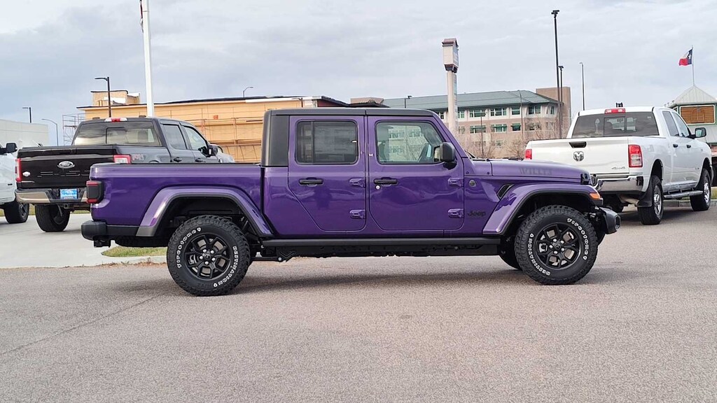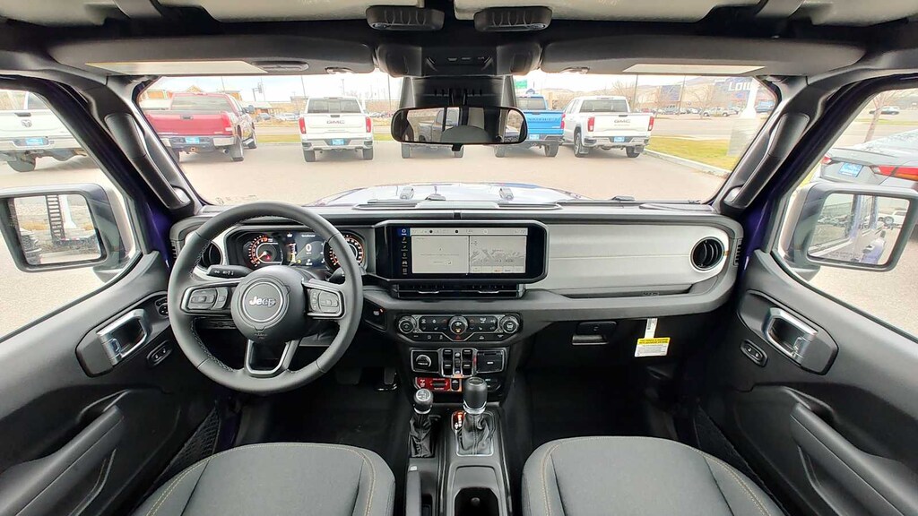 QUICK ORDER PACKAGE 24W WILLYS 3.6L V6 24V VVT UPG I Engine w/ESS, 8-Speed Automatic 850RE Transmission, LED Taillamps, Protection Sill Rails, 4-Wheel Drive Decal, Black Grille, Body Color Fender Flares (2-Piece), Front Heavy Duty Red Accent Shock Absorbers, Daytime Running Lamps LED Accents, Front LED Fog Lamps, LED Premium Reflector Headlamps, E-Locker Rear Axle, Corning Gorilla Glass, Trailer Hitch Zoom, Class IV Receiver Hitch, Security Alarm, Mold In Color Bumper w/Gloss Black, Advanced Brake Assist, Heavy Duty Engine Cooling, Automatic Headlamps, Air Conditioning w/Auto Temp Control, Deep Tint Sunscreen Windows, Off-Road Plus Mode, Willys Hood Decal, Full Speed Forward Collision Warning Plus, Rear Heavy Duty Red Accent Shock Absorbers, Front Door Locks 2-Door Passive Entry, Cluster, BLACK 3-PIECE HARD TOP Freedom Panel Storage Bag, Rear Window Defroster, Rear Sliding Window, CONVENIENCE GROUP Emergency/Assistance Call, Front Door Locks 2-Door Passive Entry, Remote Start System, Body Color Fender Flares (2-Piece), Cluster 7.0 TFT Color Display, Universal Garage Door Opener, Daytime Running Lamp System, Heated Front Seats, Air Conditioning w/Auto Temp Control, Heated Steering Wheel, Corning Gorilla Glass, MOPAR SPRAY IN BEDLINER, 8-SPEED AUTOMATIC 850RE TRANSMISSION (STD), 3.6L V6 24V VVT UPG I ENGINE W/ESS (STD). Jeep Willys with Reign exterior and Black interior features a V6 Cylinder Engine with 285 HP at 6400 RPM*.