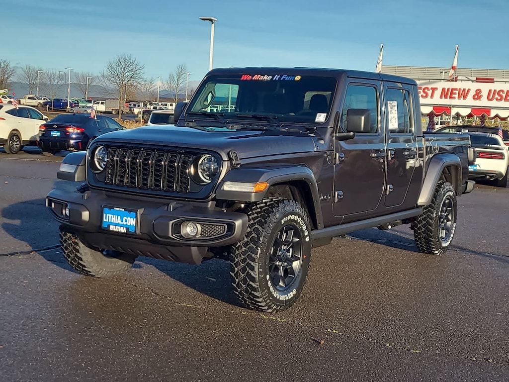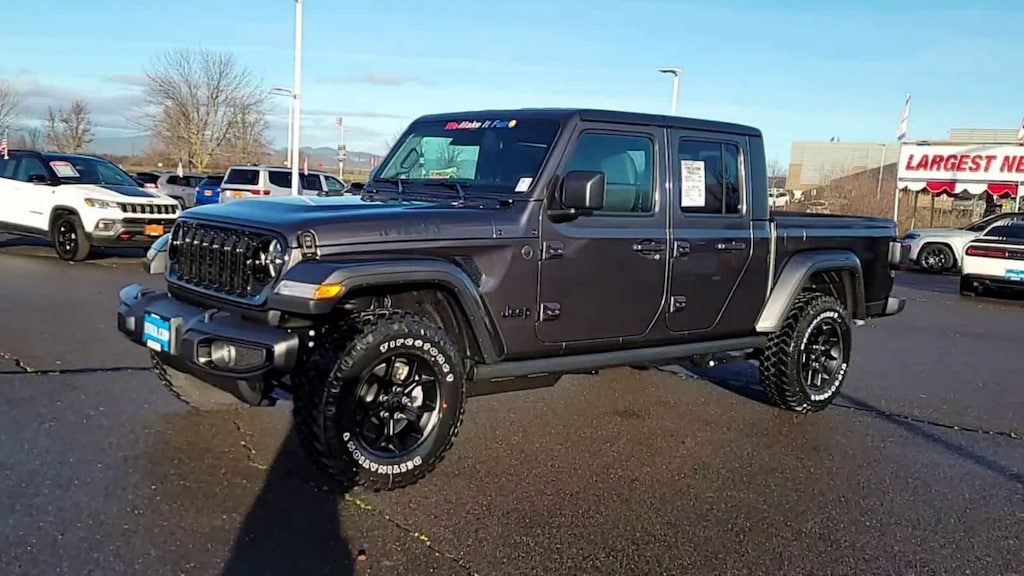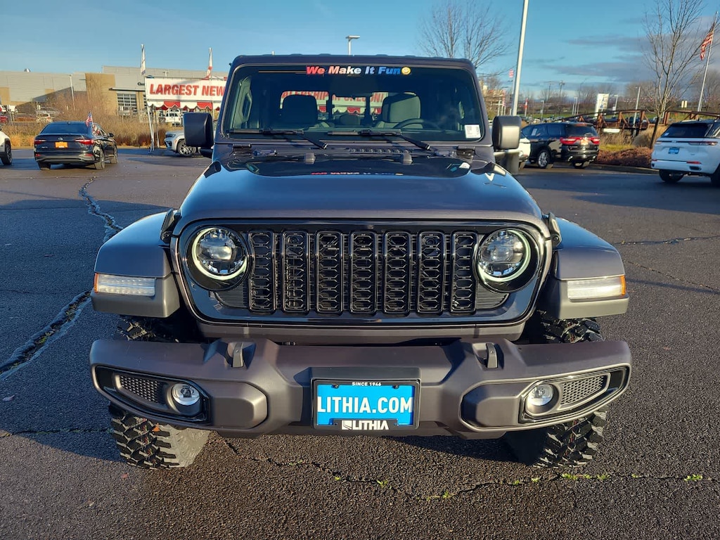QUICK ORDER PACKAGE 24W WILLYS 3.6L V6 24V VVT UPG I Engine w/ESS, 8-Speed Automatic 850RE Transmission, LED Taillamps, Protection Sill Rails, 4-Wheel Drive Decal, Black Grille, Body Color Fender Flares (2-Piece), Front Heavy Duty Red Accent Shock Absorbers, Daytime Running Lamps LED Accents, Front LED Fog Lamps, LED Premium Reflector Headlamps, E-Locker Rear Axle, Corning Gorilla Glass, Trailer Hitch Zoom, Class IV Receiver Hitch, Security Alarm, Mold In Color Bumper w/Gloss Black, Advanced Brake Assist, Heavy Duty Engine Cooling, Automatic Headlamps, Air Conditioning w/Auto Temp Control, Deep Tint Sunscreen Windows, Off-Road Plus Mode, Willys Hood Decal, Full Speed Forward Collision Warning Plus, Rear Heavy Duty Red Accent Shock Absorbers, Front Door Locks 2-Door Passive Entry, Cluster, BLACK 3-PIECE HARD TOP Freedom Panel Storage Bag, Rear Window Defroster, Rear Sliding Window, CONVENIENCE GROUP Emergency/Assistance Call, Front Door Locks 2-Door Passive Entry, Remote Start System, Body Color Fender Flares (2-Piece), Cluster 7.0 TFT Color Display, Universal Garage Door Opener, Daytime Running Lamp System, Heated Front Seats, Air Conditioning w/Auto Temp Control, Heated Steering Wheel, Corning Gorilla Glass, ALPINE PREMIUM AUDIO SYSTEM, MOPAR SPRAY IN BEDLINER, 8-SPEED AUTOMATIC 850RE TRANSMISSION (STD), 3.6L V6 24V VVT UPG I ENGINE W/ESS (STD). Jeep Willys with Granite Crystal Metallic Clearcoat exterior and Black interior features a V6 Cylinder Engine with 285 HP at 6400 RPM*.