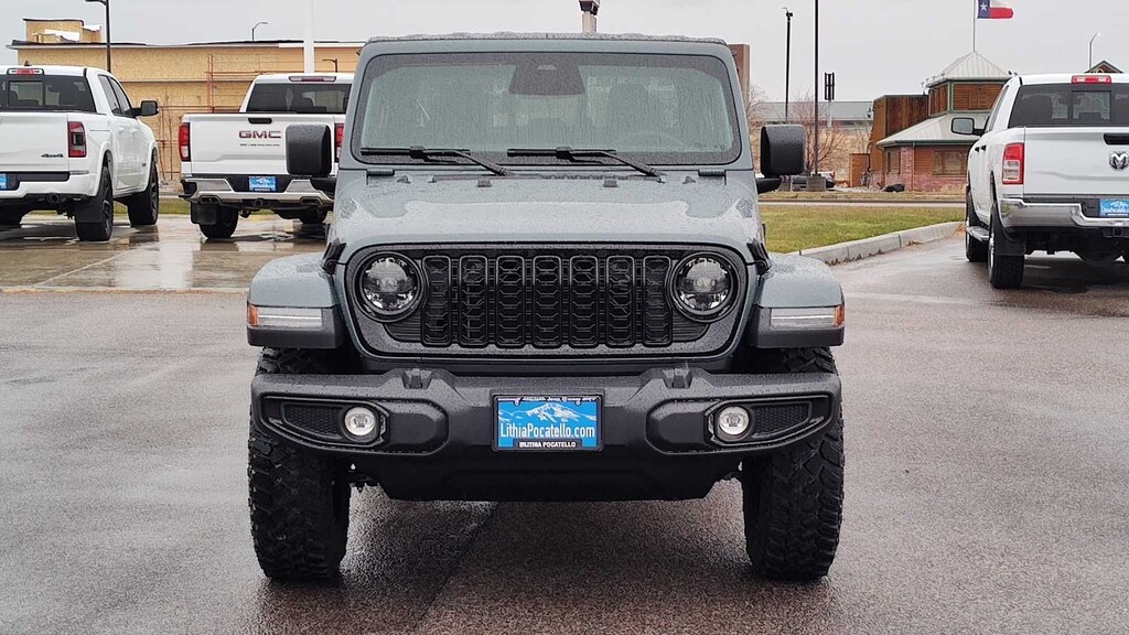 QUICK ORDER PACKAGE 24W WILLYS 3.6L V6 24V VVT UPG I Engine w/ESS, 8-Speed Automatic 850RE Transmission, LED Taillamps, Protection Sill Rails, 4-Wheel Drive Decal, Black Grille, Body Color Fender Flares (2-Piece), Front Heavy Duty Red Accent Shock Absorbers, Daytime Running Lamps LED Accents, Front LED Fog Lamps, LED Premium Reflector Headlamps, E-Locker Rear Axle, Corning Gorilla Glass, Trailer Hitch Zoom, Class IV Receiver Hitch, Security Alarm, Mold In Color Bumper w/Gloss Black, Advanced Brake Assist, Heavy Duty Engine Cooling, Automatic Headlamps, Air Conditioning w/Auto Temp Control, Deep Tint Sunscreen Windows, Off-Road Plus Mode, Willys Hood Decal, Full Speed Forward Collision Warning Plus, Rear Heavy Duty Red Accent Shock Absorbers, Front Door Locks 2-Door Passive Entry, Cluster, CONVENIENCE GROUP Emergency/Assistance Call, Front Door Locks 2-Door Passive Entry, Remote Start System, Cluster 7.0 TFT Color Display, Universal Garage Door Opener, Daytime Running Lamp System, Heated Front Seats, Air Conditioning w/Auto Temp Control, Heated Steering Wheel, Corning Gorilla Glass, MOPAR SPRAY IN BEDLINER, 8-SPEED AUTOMATIC 850RE TRANSMISSION (STD), 3.6L V6 24V VVT UPG I ENGINE W/ESS (STD), BLACK 3-PIECE HARD TOP Freedom Panel Storage Bag, Rear Window Defroster, Rear Sliding Window. Jeep Willys with Anvil Clearcoat exterior and Black interior features a V6 Cylinder Engine with 285 HP at 6400 RPM*.
