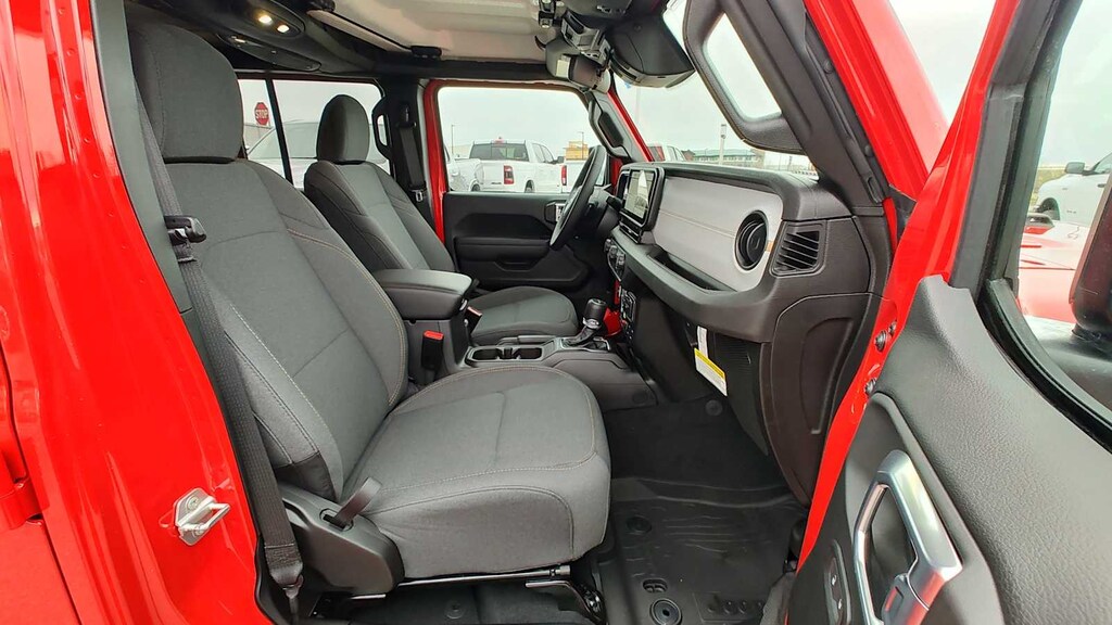 QUICK ORDER PACKAGE 24W WILLYS 3.6L V6 24V VVT UPG I Engine w/ESS, 8-Speed Automatic 850RE Transmission, LED Taillamps, Protection Sill Rails, 4-Wheel Drive Decal, Black Grille, Body Color Fender Flares (2-Piece), Front Heavy Duty Red Accent Shock Absorbers, Daytime Running Lamps LED Accents, Front LED Fog Lamps, LED Premium Reflector Headlamps, E-Locker Rear Axle, Corning Gorilla Glass, Trailer Hitch Zoom, Class IV Receiver Hitch, Security Alarm, Mold In Color Bumper w/Gloss Black, Advanced Brake Assist, Heavy Duty Engine Cooling, Automatic Headlamps, Air Conditioning w/Auto Temp Control, Deep Tint Sunscreen Windows, Off-Road Plus Mode, Willys Hood Decal, Full Speed Forward Collision Warning Plus, Rear Heavy Duty Red Accent Shock Absorbers, Front Door Locks 2-Door Passive Entry, Cluster, CONVENIENCE GROUP Emergency/Assistance Call, Front Door Locks 2-Door Passive Entry, Remote Start System, Cluster 7.0 TFT Color Display, Universal Garage Door Opener, Daytime Running Lamp System, Heated Front Seats, Air Conditioning w/Auto Temp Control, Heated Steering Wheel, Corning Gorilla Glass, MOPAR SPRAY IN BEDLINER, 8-SPEED AUTOMATIC 850RE TRANSMISSION (STD), 3.6L V6 24V VVT UPG I ENGINE W/ESS (STD), BLACK 3-PIECE HARD TOP Freedom Panel Storage Bag, Rear Window Defroster, Rear Sliding Window. Jeep Willys with Firecracker Red Clearcoat exterior and Black interior features a V6 Cylinder Engine with 285 HP at 6400 RPM*.